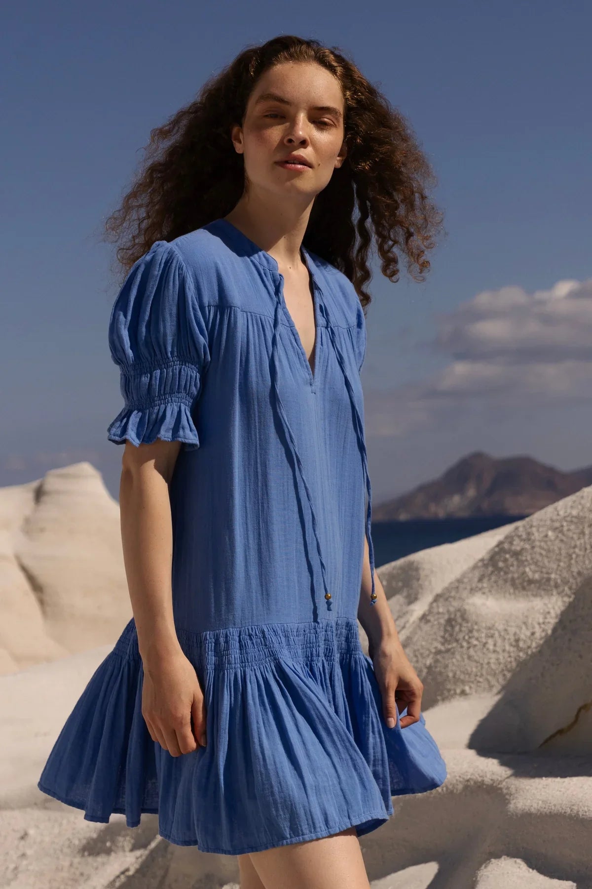 Oliphant Smocked Drop Mini-Bermuda Blue