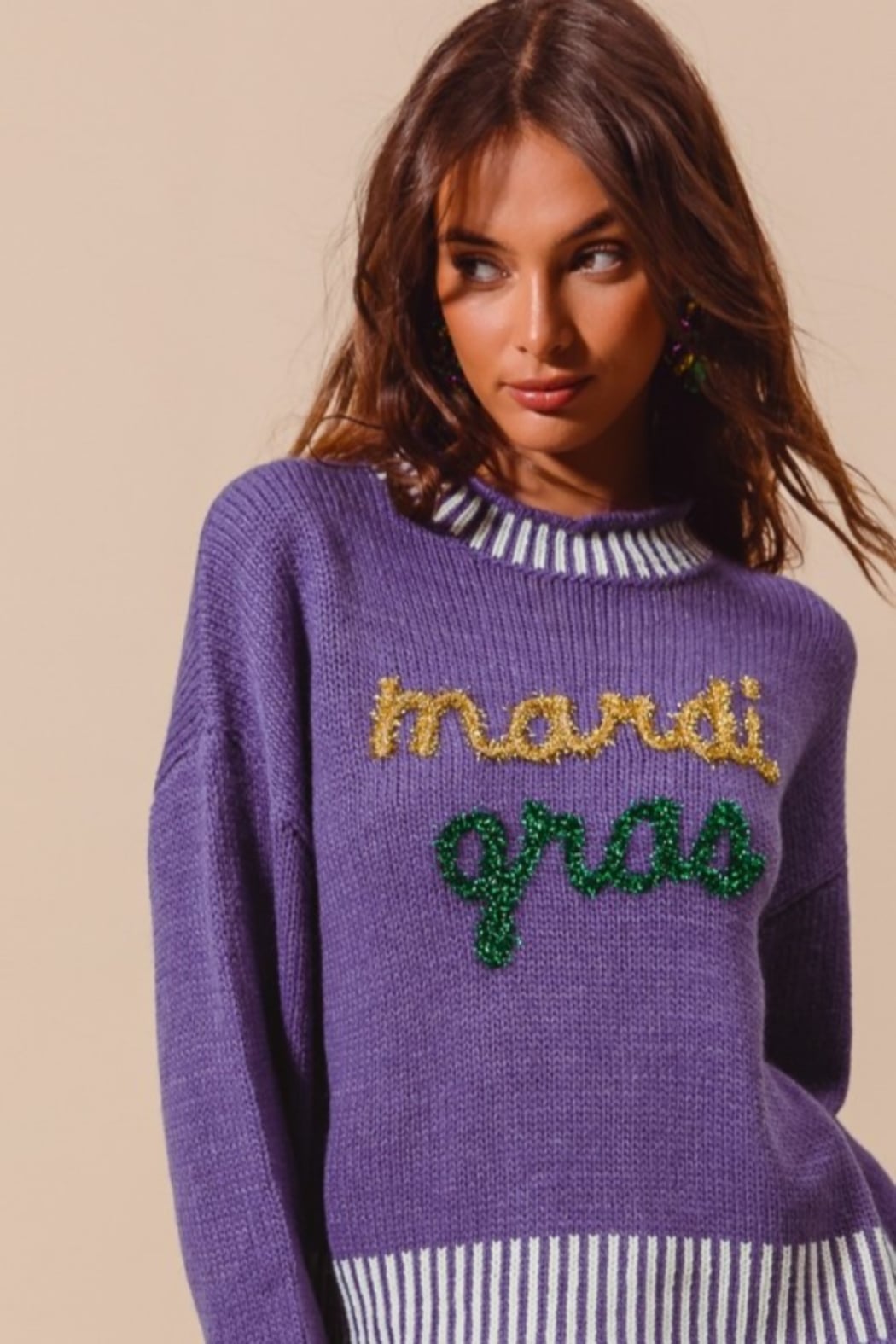Mardi Gras Tinsel Letter Sweater