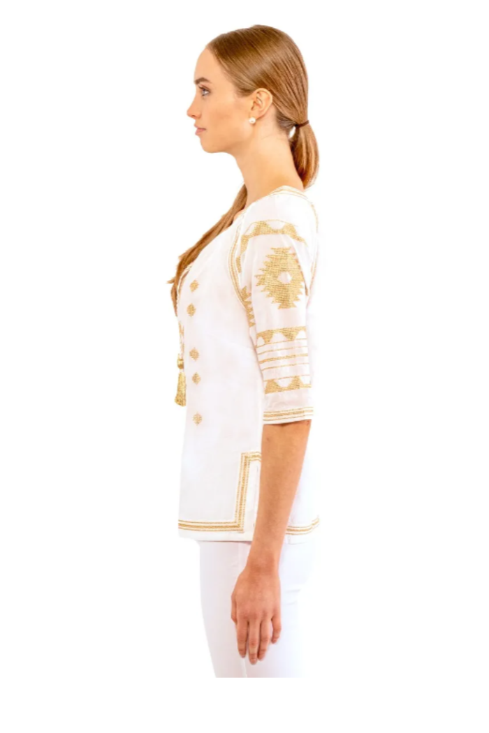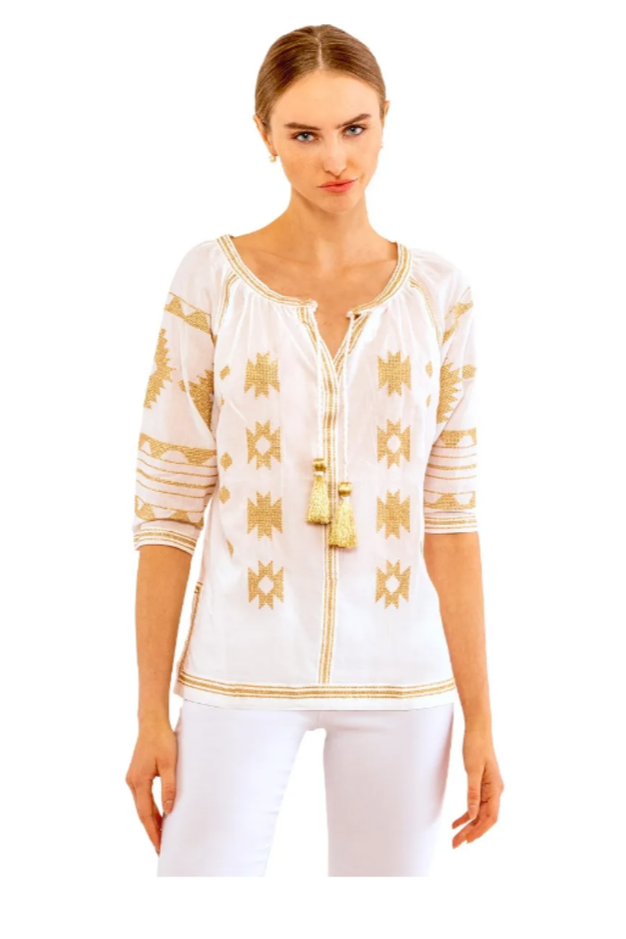 Embroidered Tassel Tie Top