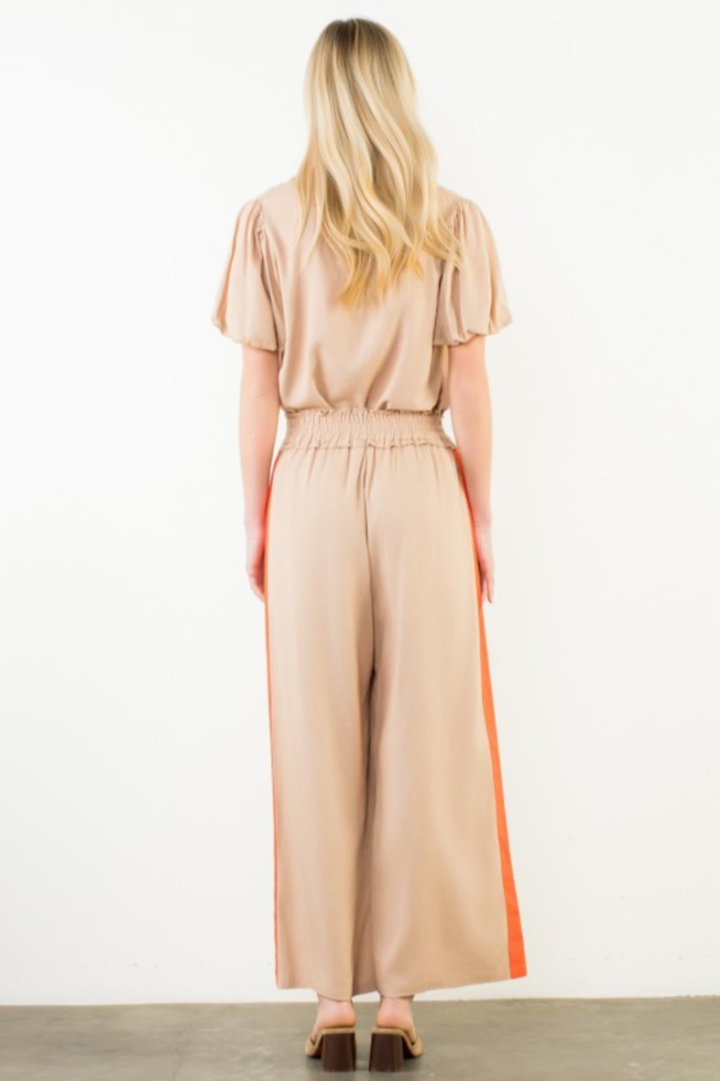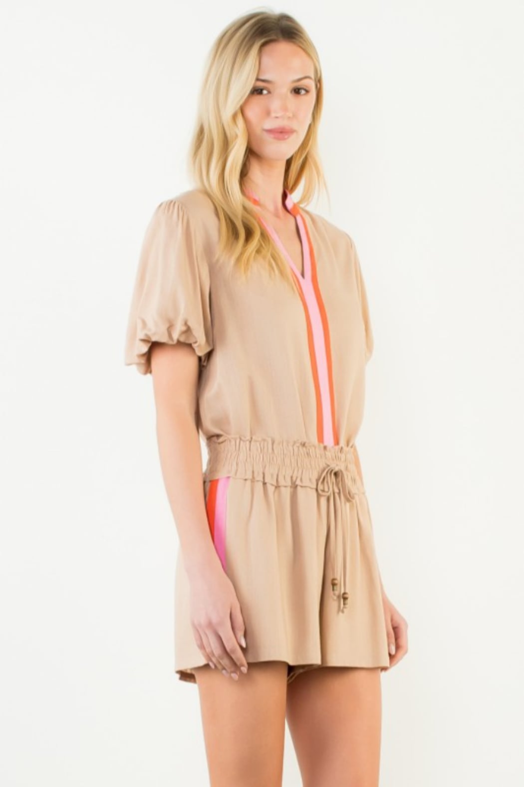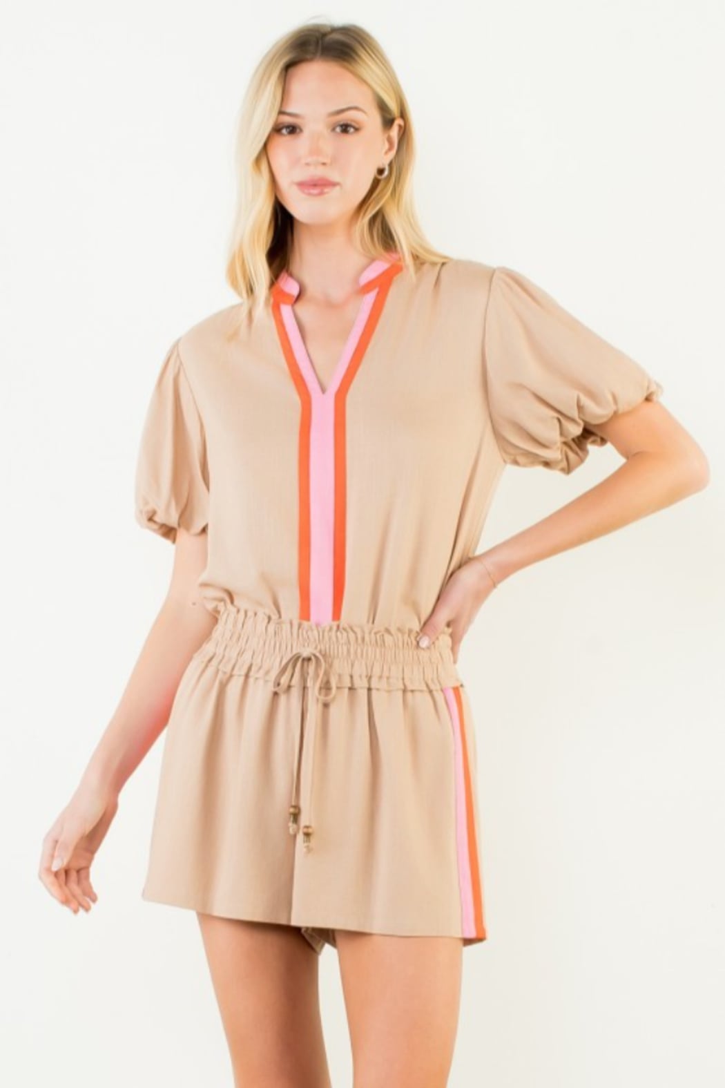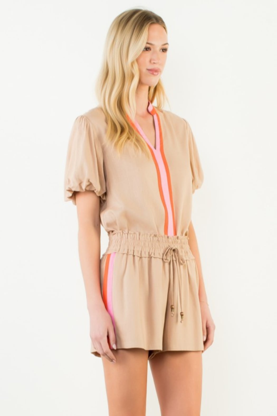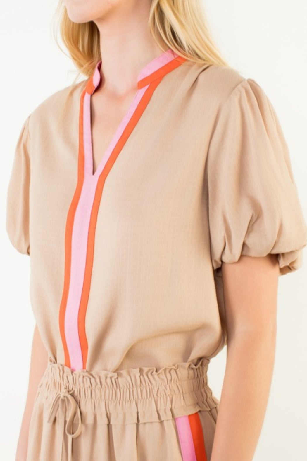 Contrast Stripe Puff Sleeve Blouse