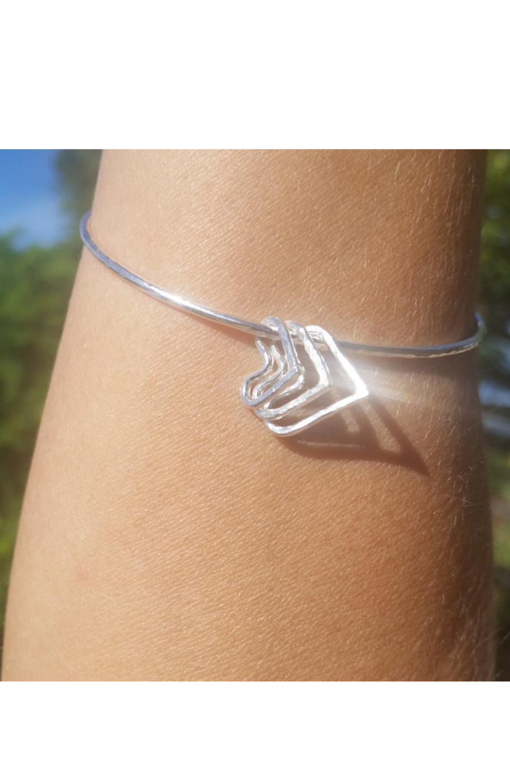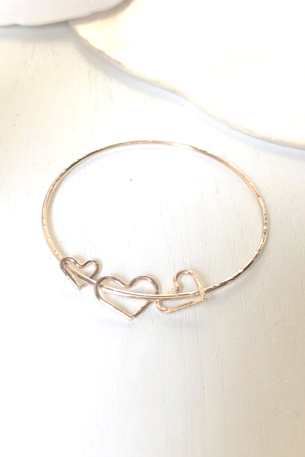 3 Heart Bangle is handcrafted by local Maui jewelry artisan. Hand hammered. This bracelet comes in 14K gold-filled or Sterling Silver. A beautiful Hawaiian keepsake or gift.