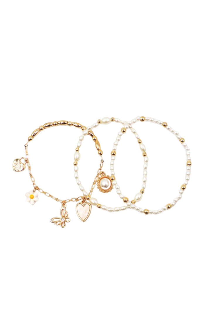 3PCS MULTI CHARM PEARL STRETCH BRACELET
