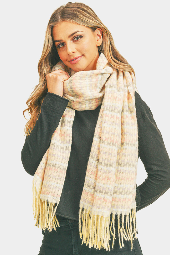 Super soft Light Pastel Multi Colored Basket Weave Warm Oblong Scarf with Fringe. • Size : 27" X 75" L + 3.5" L