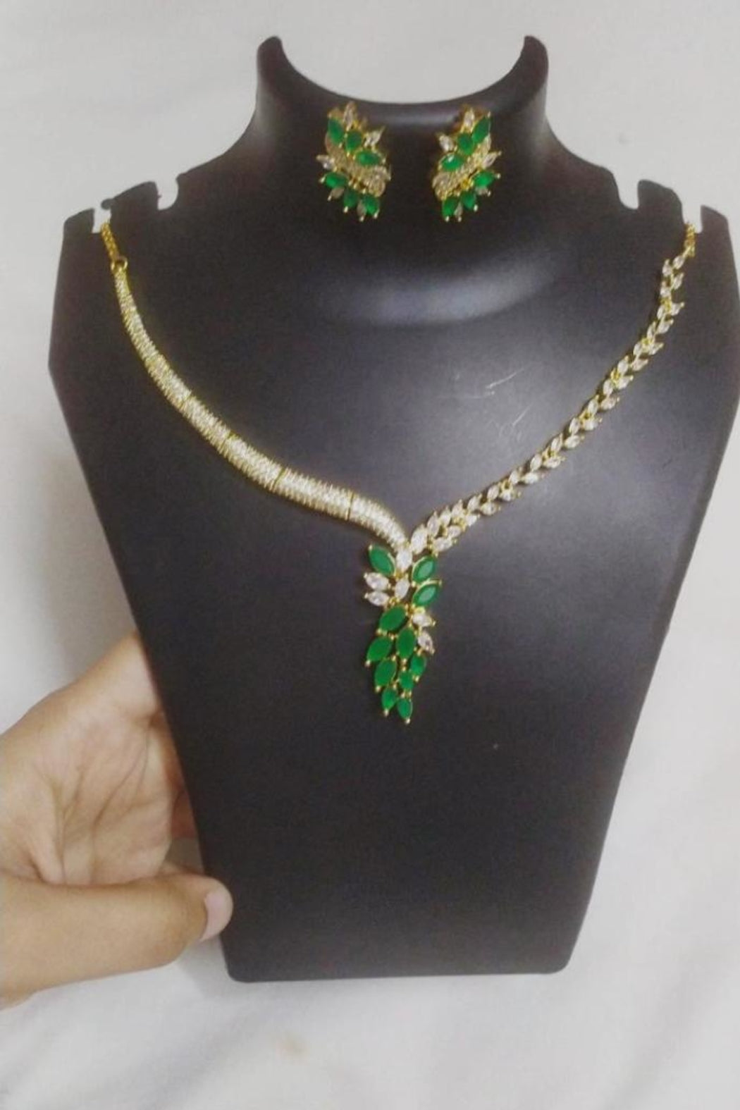 Beautiful Pendent Set with Leaves Design Color - Gold and Green One Piece Available Gold Tone and Gold Plated and Skin Friendly For Wholesale inquiry send email to LevanaJewelryclub@gmail.com with SKU Number