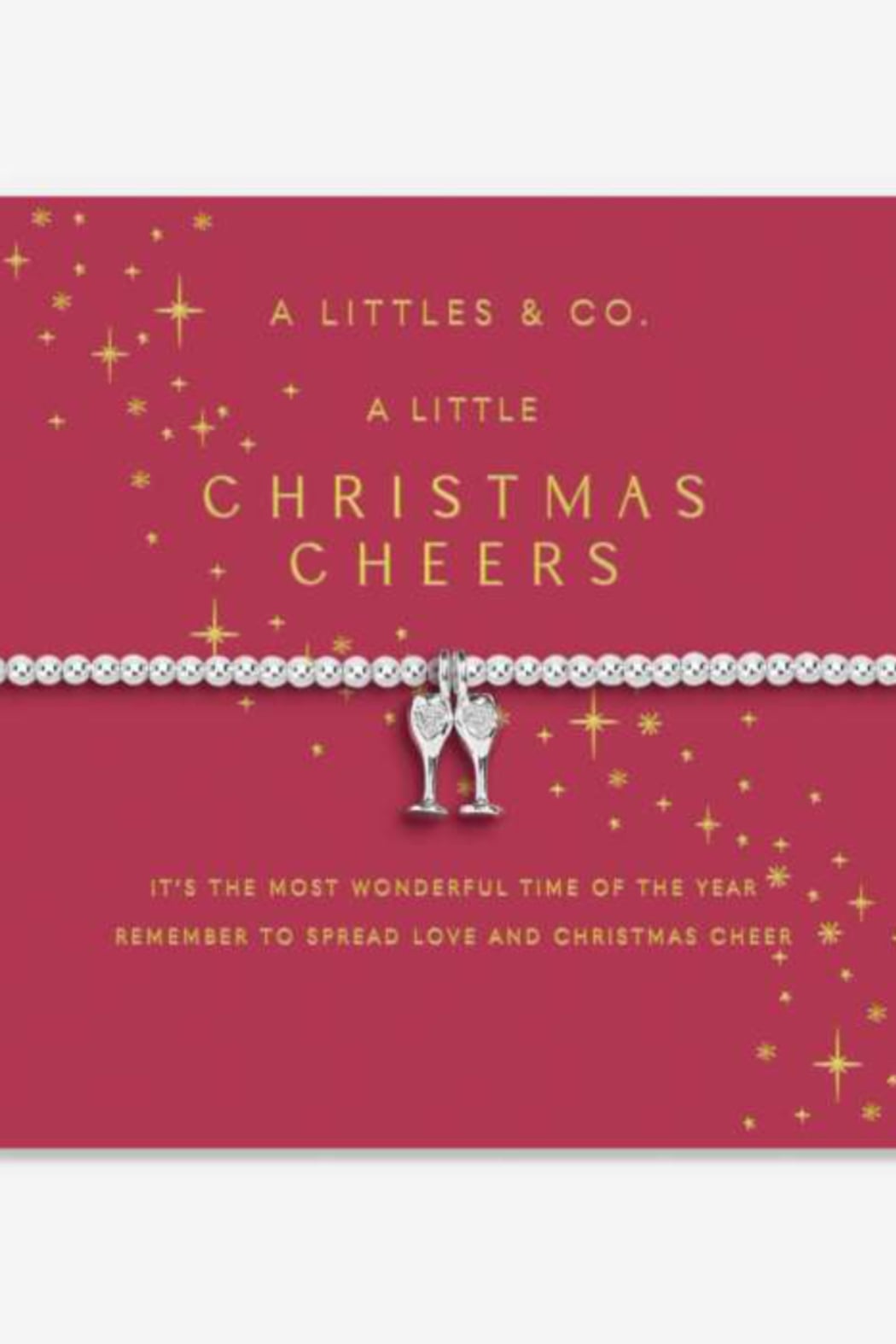 Capture every magical moment with your loved ones this festive season with our twinkling Christmas A Little Bracelets! Made to last and be loved for a lifetime, our Christmas A Little 'Christmas Cheers' Bracelet In Silver Plating is threaded with our classic silver-plated beads and decorated with a champagne cheers charm to toast to the season. Wrapped around a shimmering starburst-print card and framed by a sweet poem, it's sure to make a wonderful stocking stuffer or under-the-tree treat. -Silver-Plated -One Size Fits All -1 A Little Sold Every 30 Seconds Worldwide -Designed In The UK, Customized In The US -Presented On A Festive Sentiment-Stamped Card -Free Customized Recyclable Gift Packaging