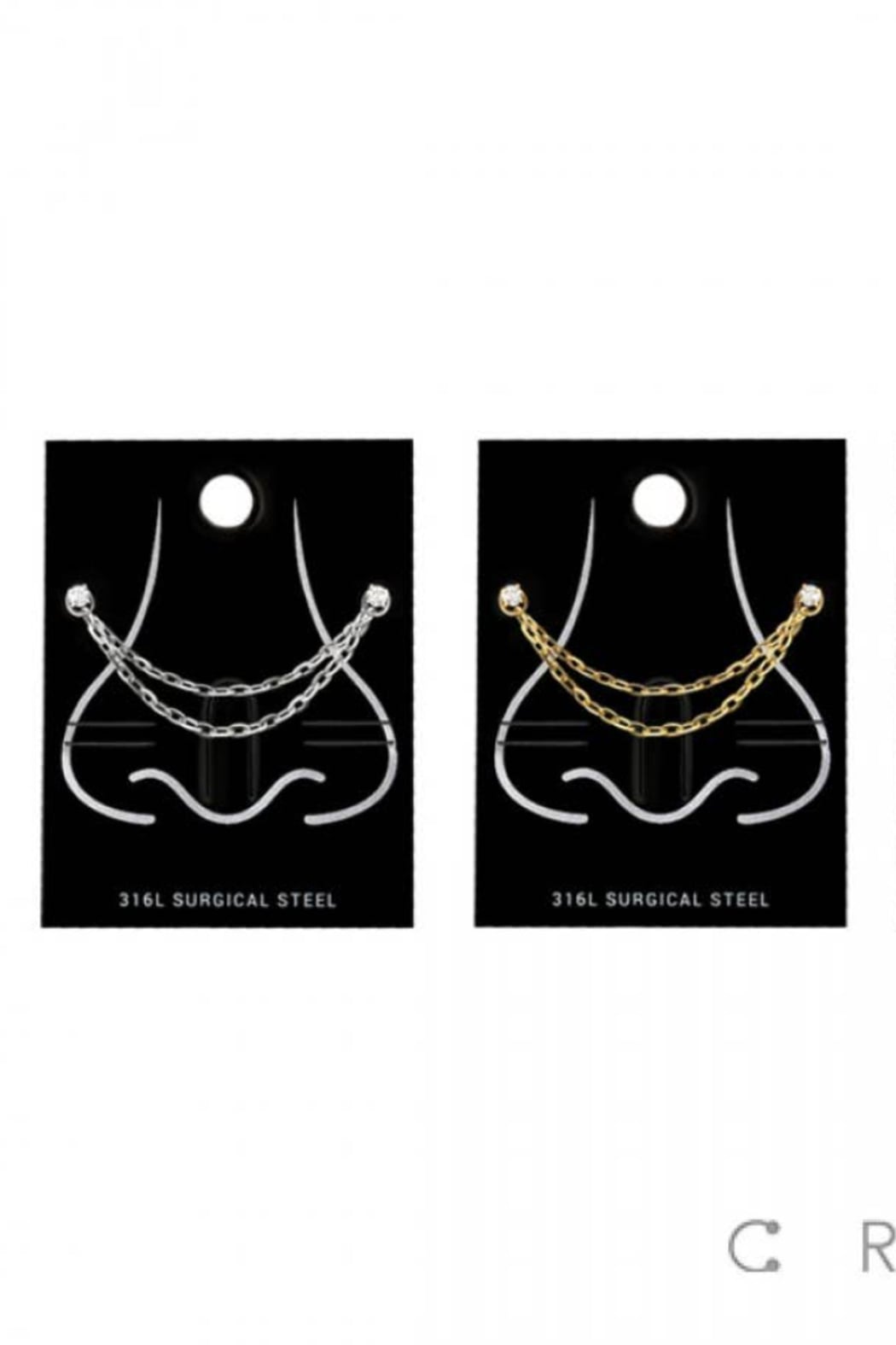 CZ L-Shape Nose Rings with Double Chain