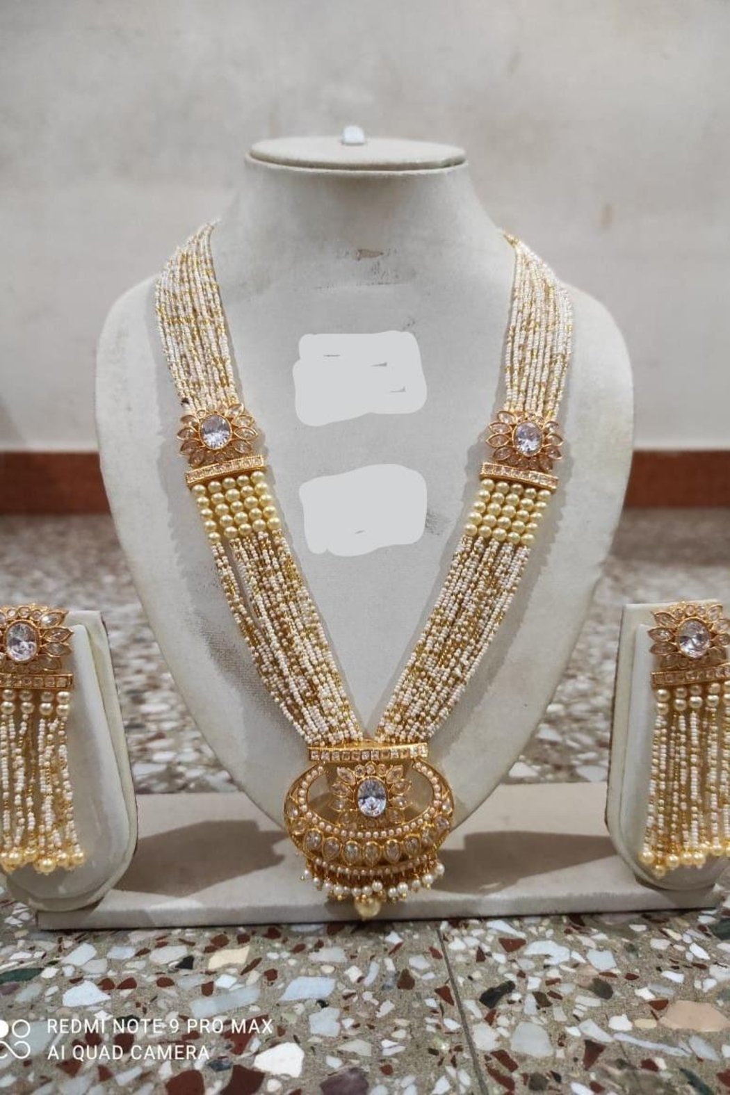 Very Beautiful Designer Pearl and Kundan Necklace Set with Long Earrings