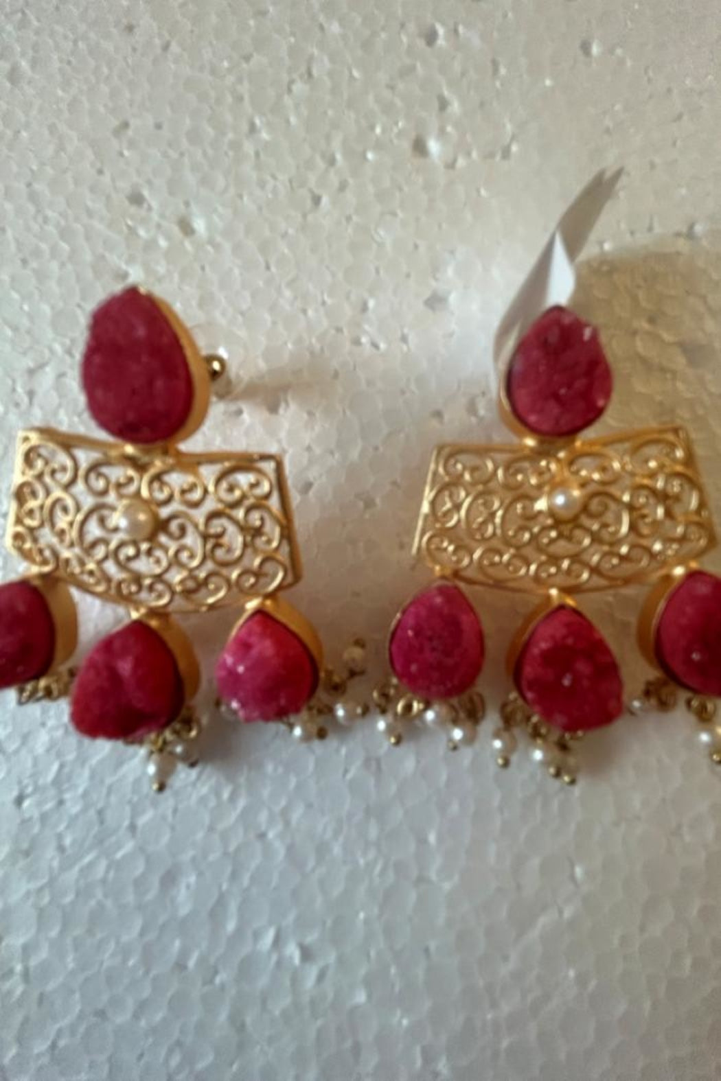Designer Pink Earrings With Square And Gold Design