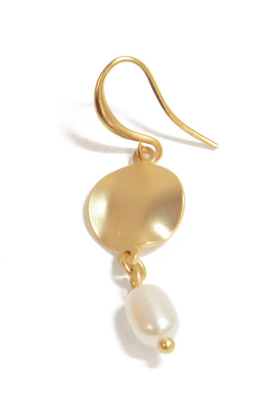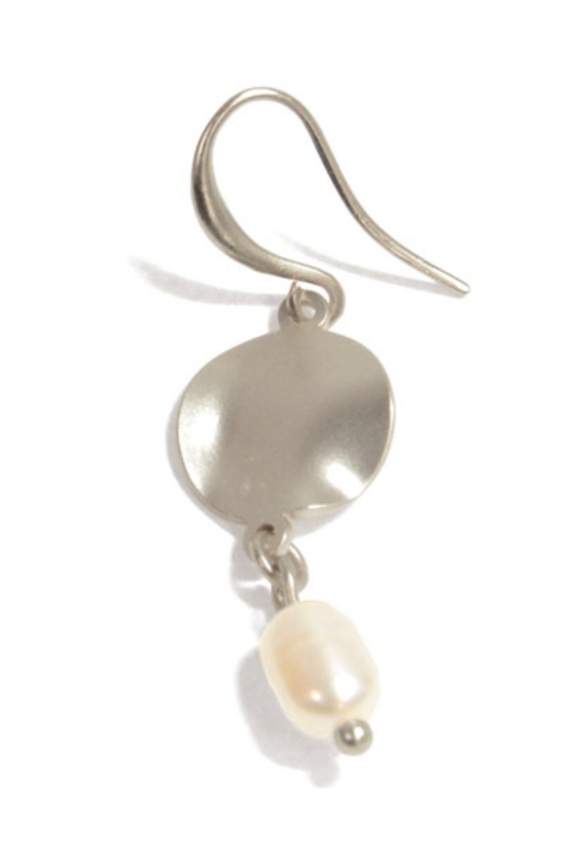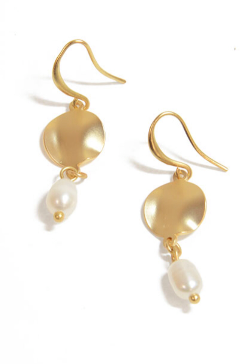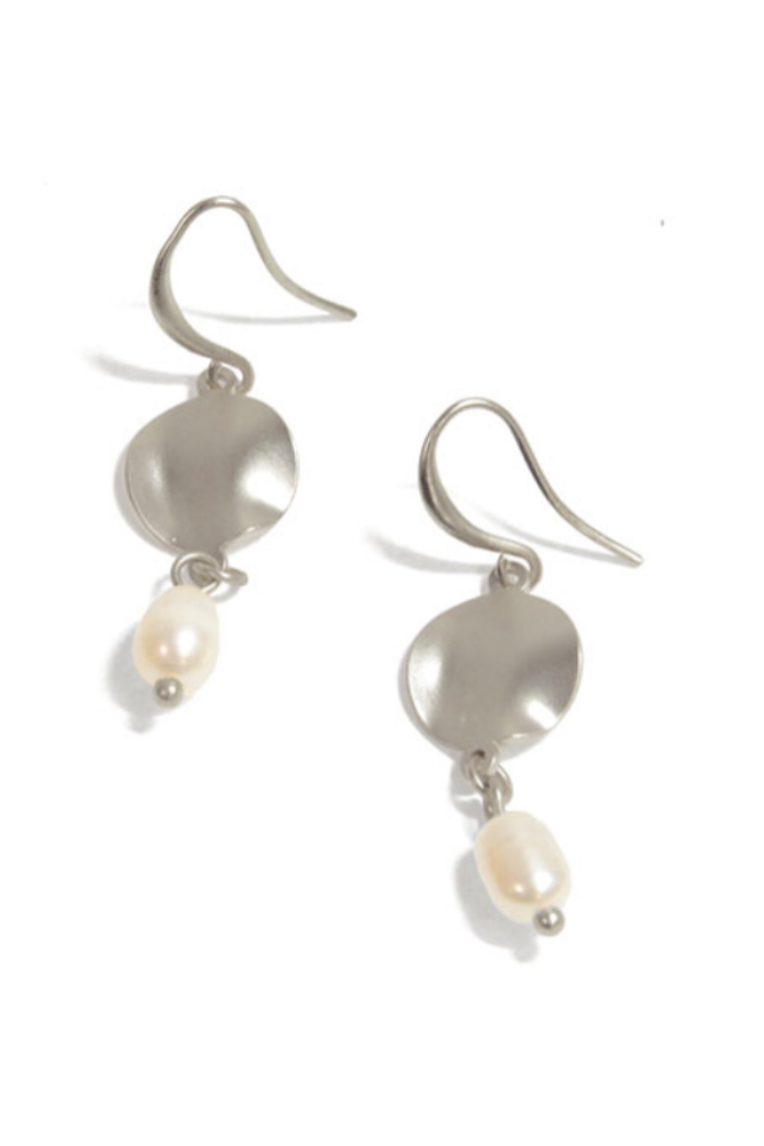 Matte Finish Disc Earrings with Pearl Drops. Approximately 1.25”