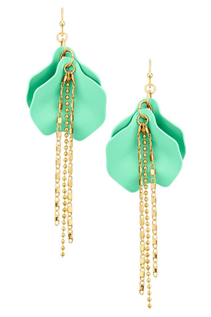This trendy flower earrig add a pop of color to any outfit. Light weight
