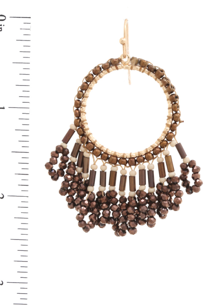 A rich brown beaded drop earring