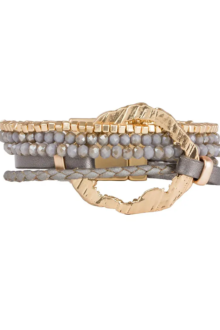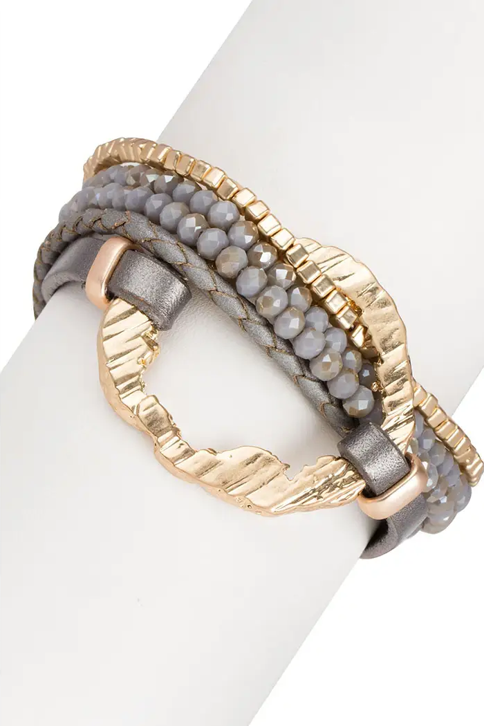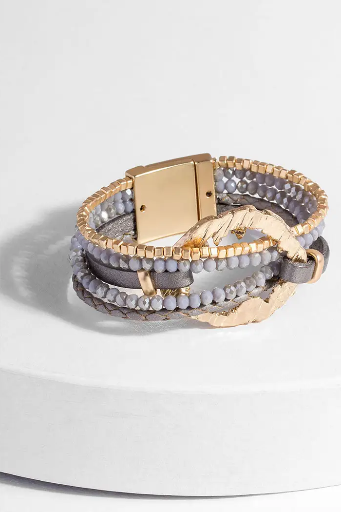 The Earthly Flow bracelet creates the right amount of glamour and casual elegance. By combining genuine leather, glass beads, and metal detailing we’ve created a shimmering piece that represents the natural flow of the universe. With the magnetic clasp, this bracelet has the added bonus of being easy to fasten.