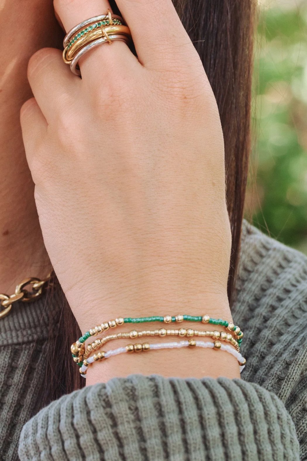 Emerald Beaded Bracelet Set