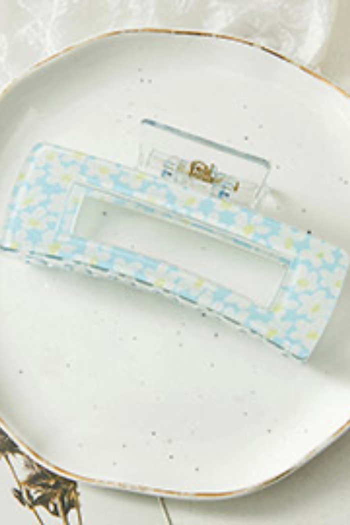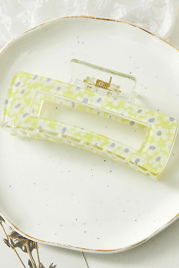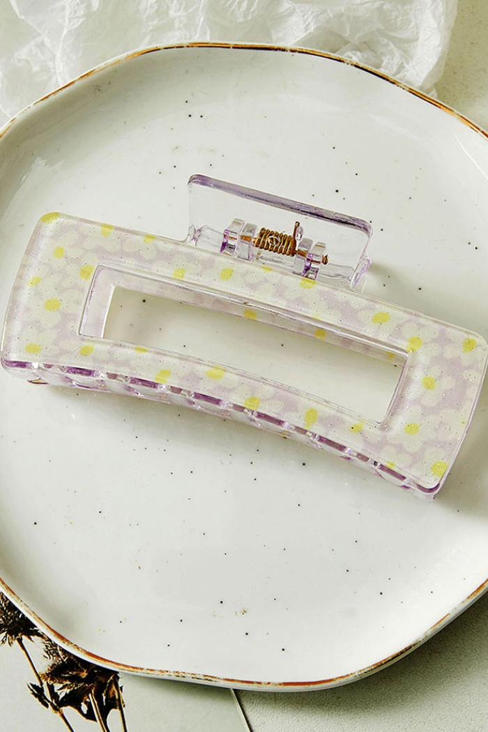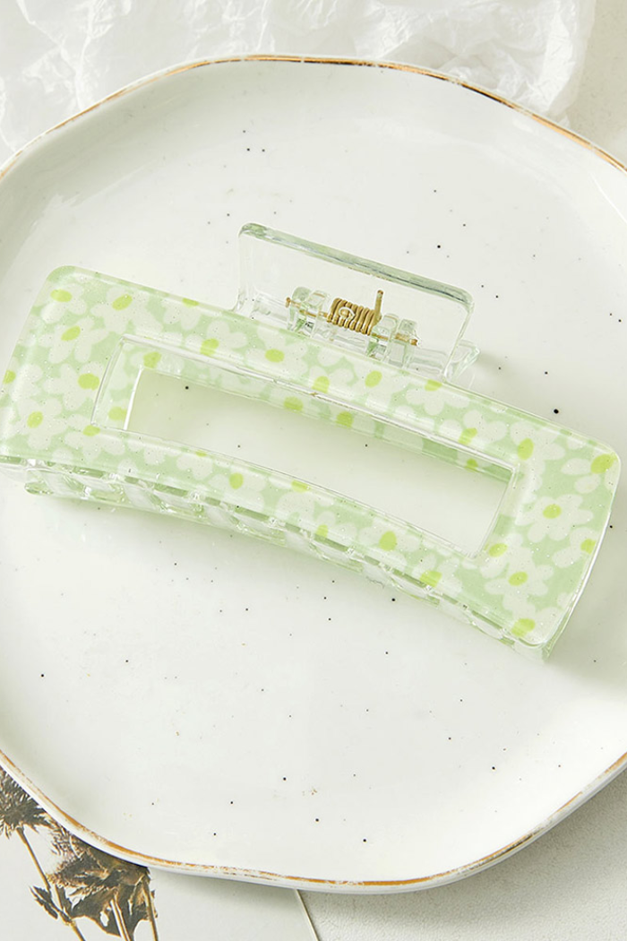 Floral Rectangular Hair Clip • Size : 4" X 1.75" • Material : 100% Acrylic