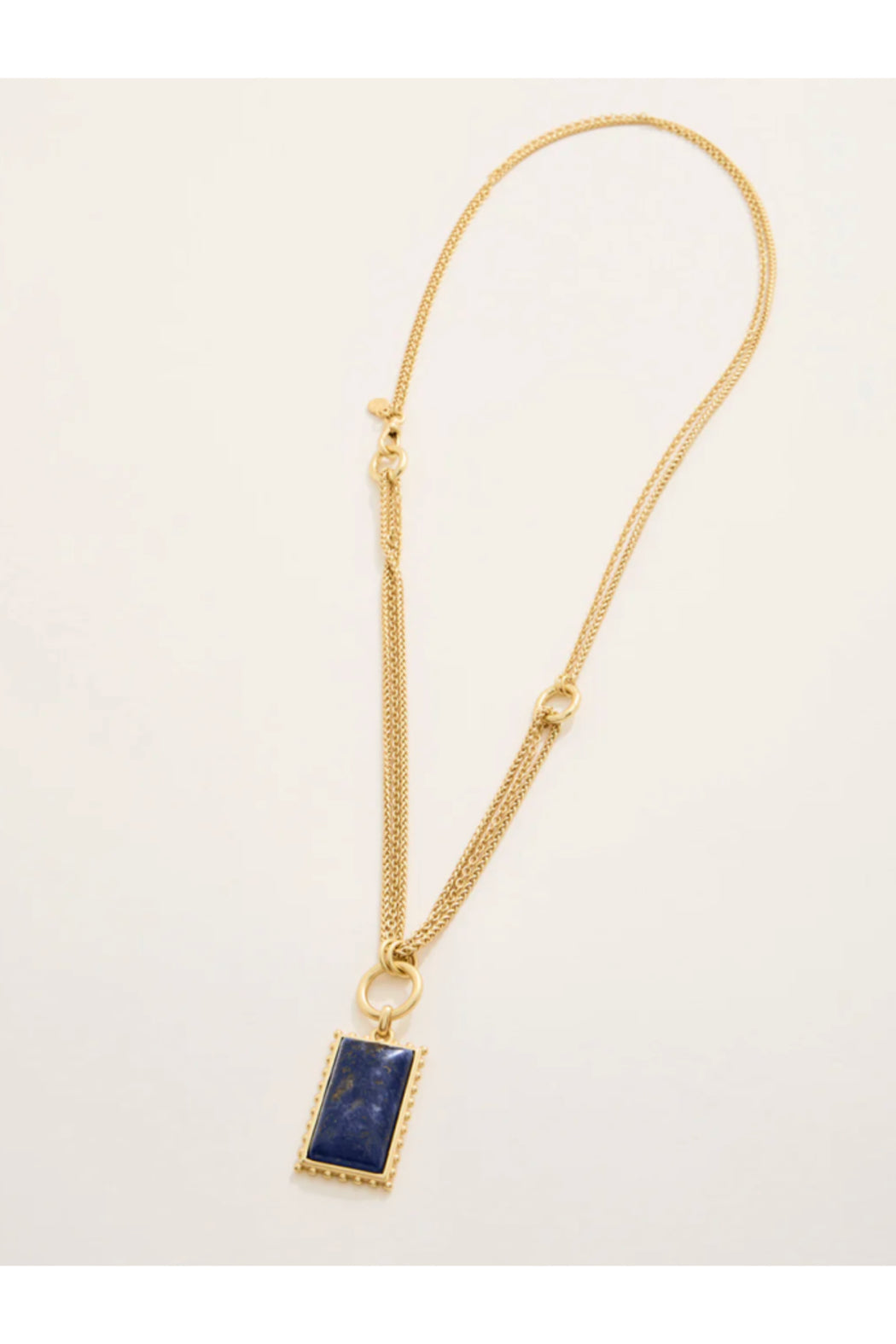 The rolling rivers of the Highlands are encapsulated in our 18kt matte gold plated Highlands Layered Necklace featuring a natural blue stone. Please note: This design features natural stones and each piece is one-of-a-kind. Colors and patterns may vary slightly from the image shown.