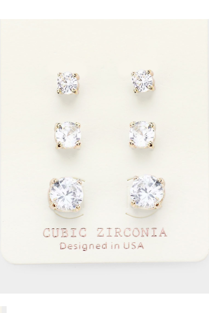 3Pairs - CZ Cubic Zirconia Round Stud Earrings
