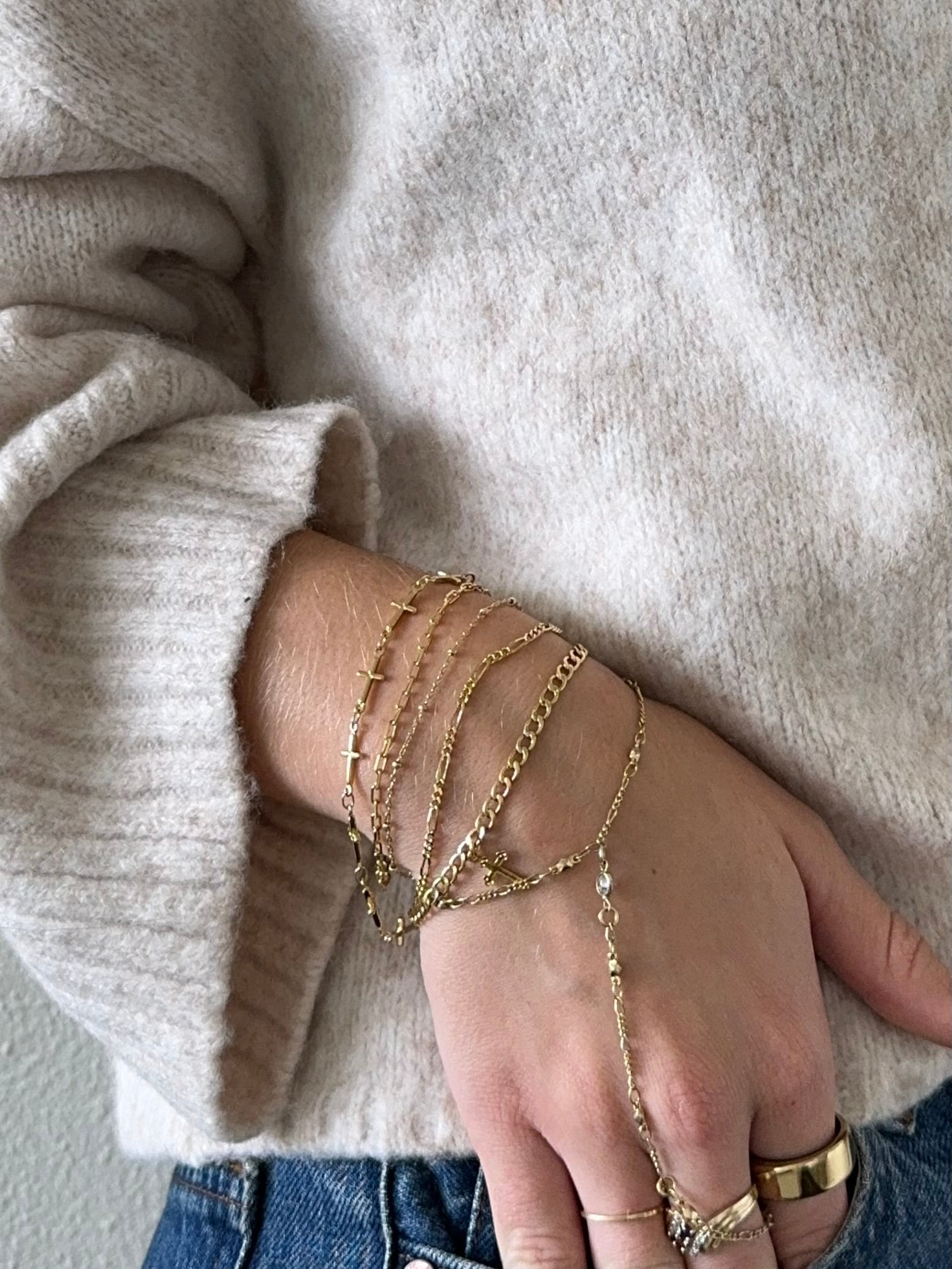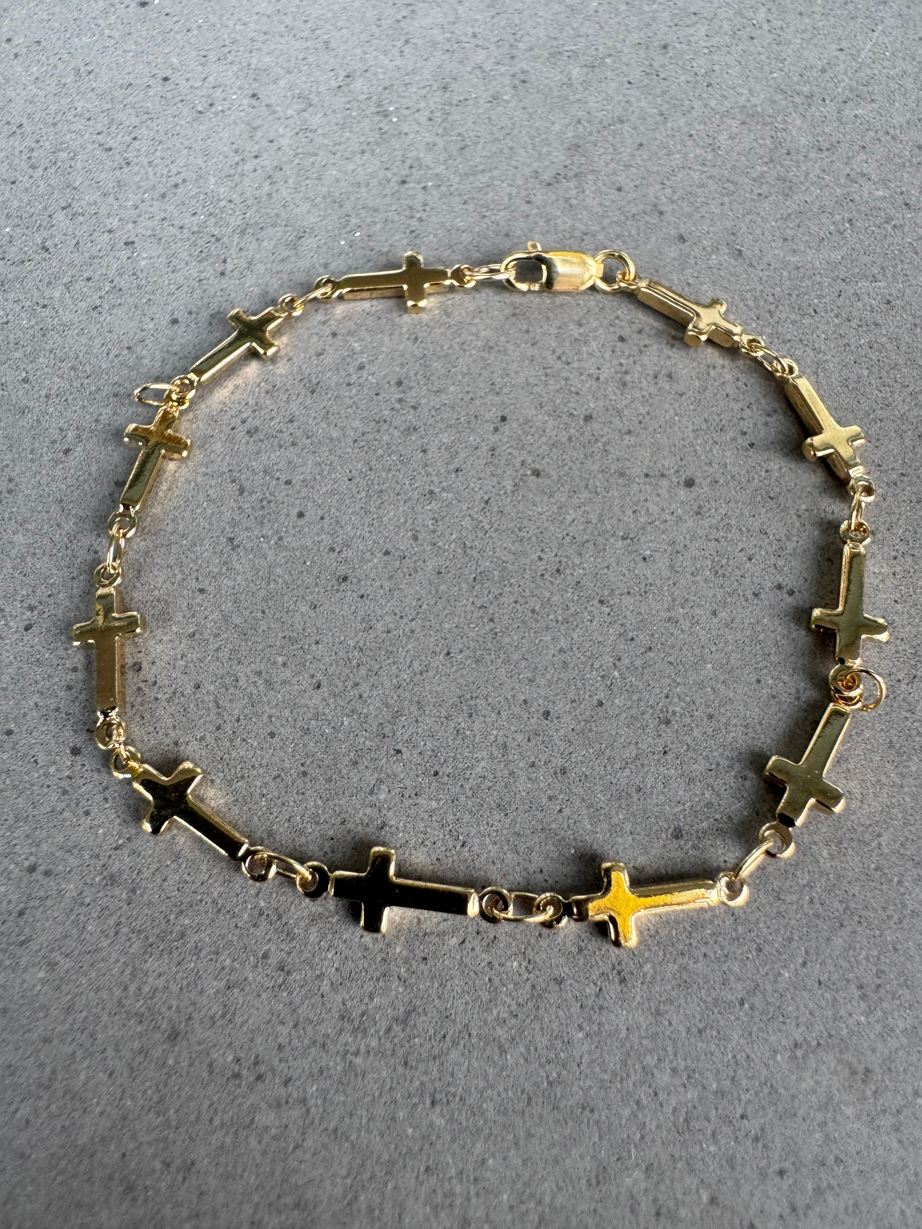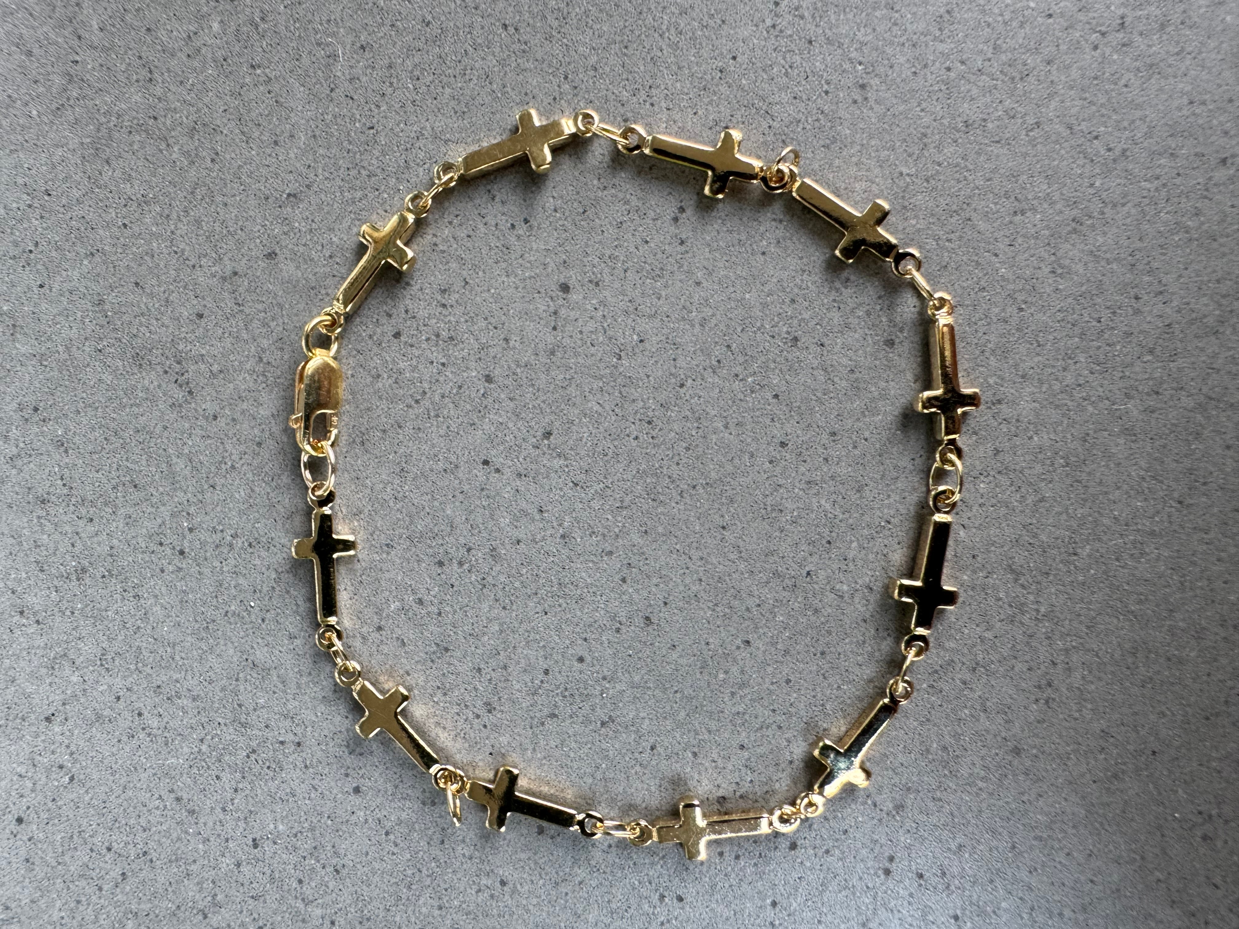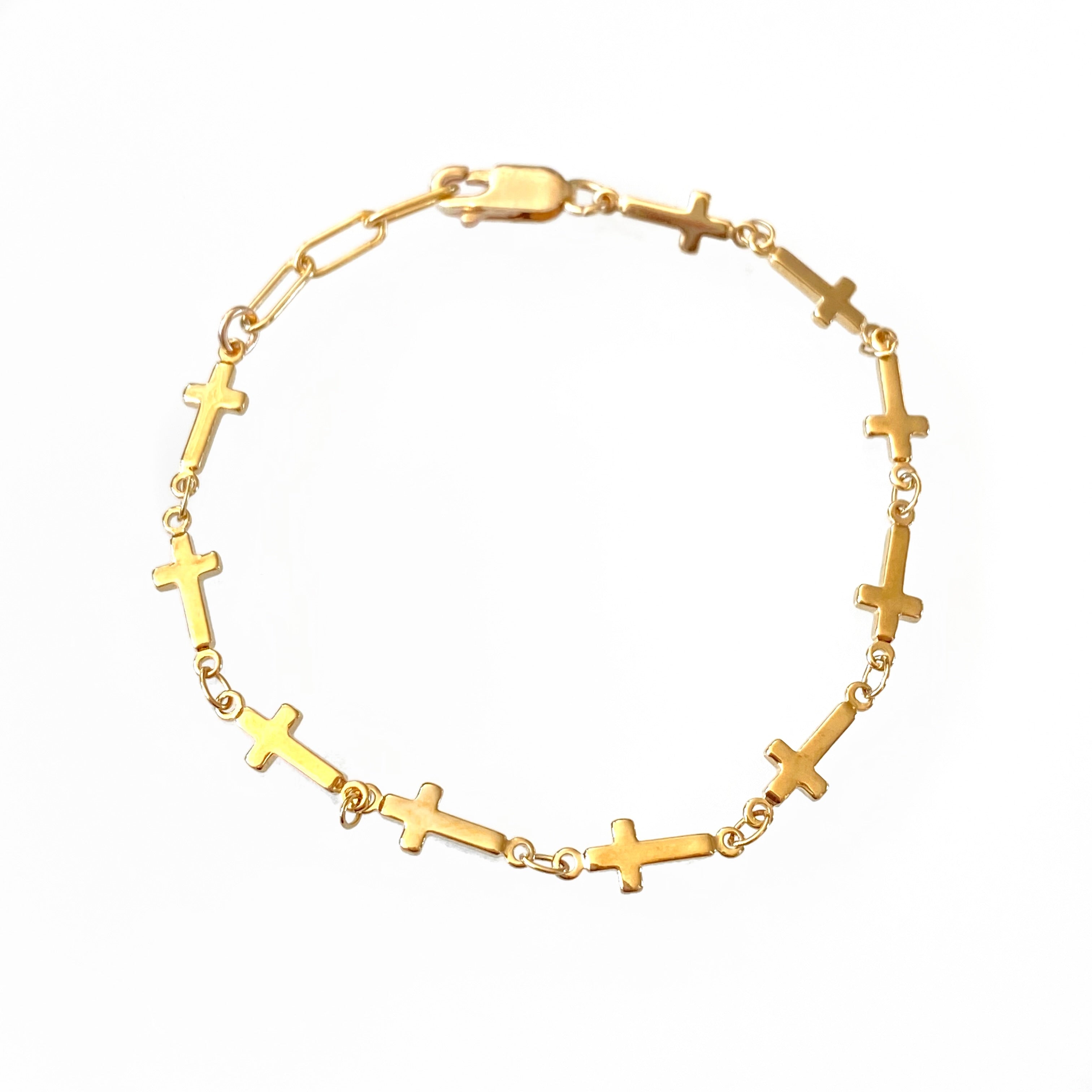 The Marian Bracelet is a timeless symbol of faith and elegance. Crafted from 18K gold-plated material, this delicate cross bracelet features a secure lobster clasp and can be adjusted between 6.5 and 7 inches for a perfect fit. Simple yet meaningful, it’s the ideal everyday piece that adds a subtle touch of grace to any look.