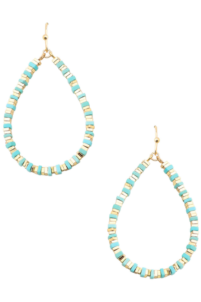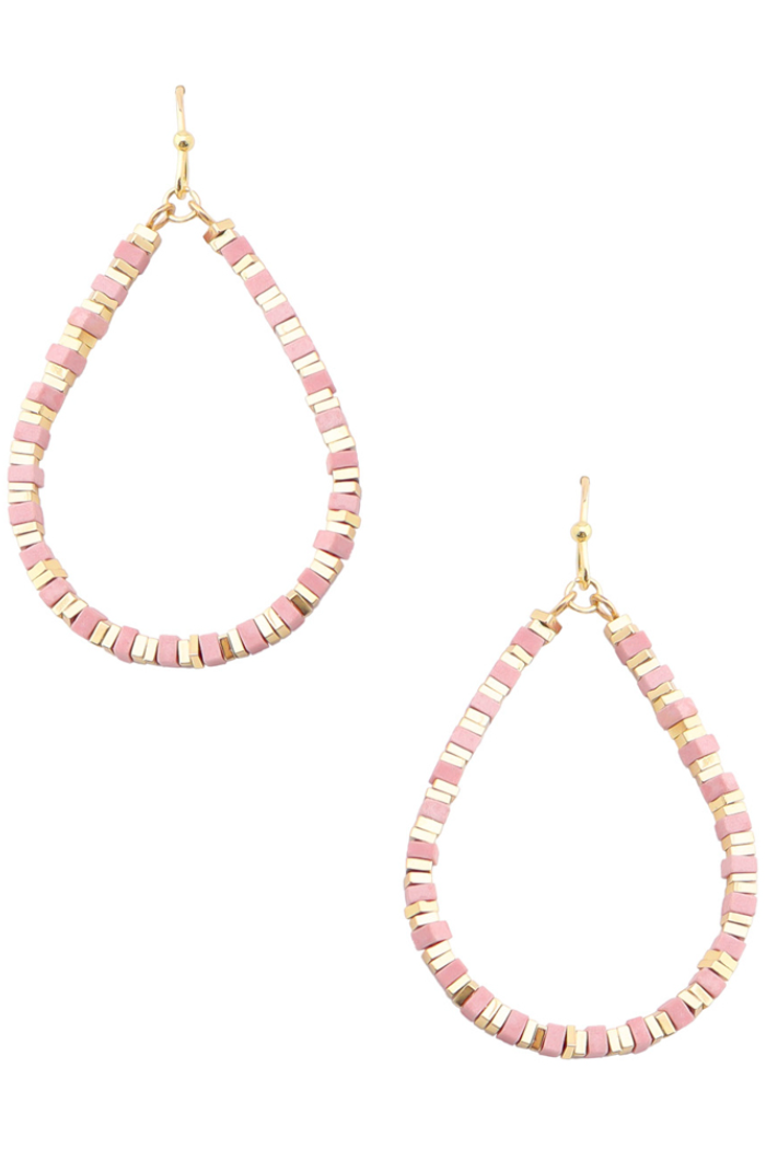 METAL COLOR BEAD TEARDROP DANGLE EARRING