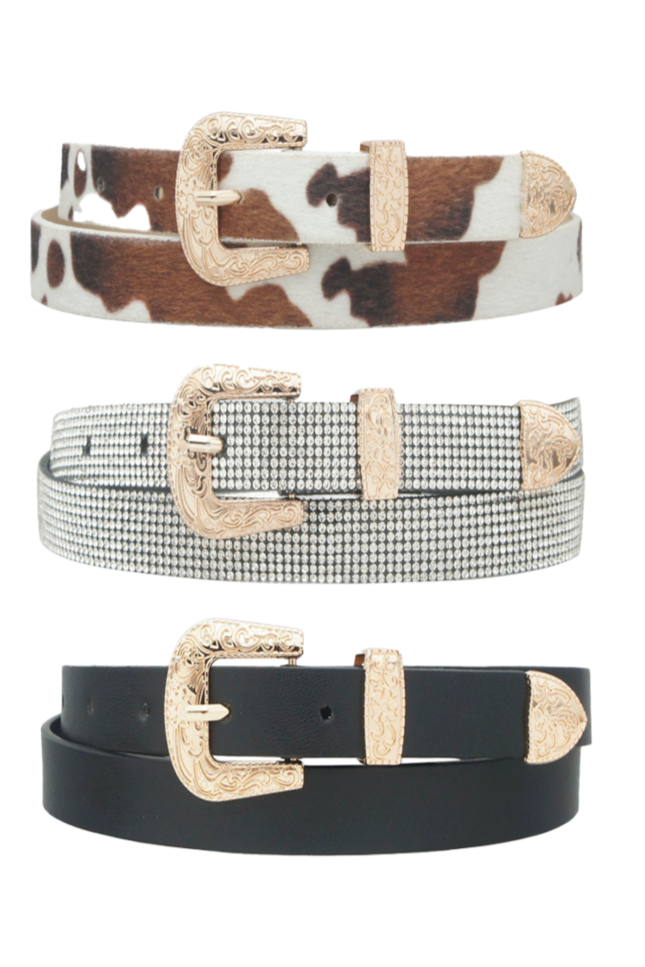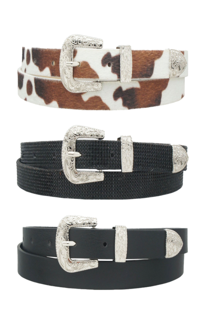 MINI FLORA EMBOSSED WESTERN TRIO BELT