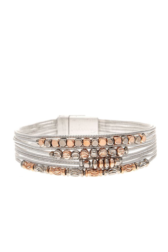 Smooth Silver Small Blocky Multi Color Beaded Snake Chain Magnetic Clasp Bracelet