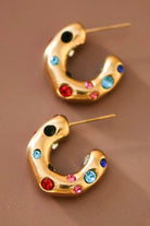 These small C hoop earrings, dipped in 18K gold and adorned with crystals, measure approximately 0.75" long. Crafted from non-tarnish stainless steel, they are hypoallergenic, waterproof, fade-resistant, and designed to maintain their shine for years. With proper care, the gold plating stays vibrant for at least two years, making them an ideal choice for daily wear or elegant events.