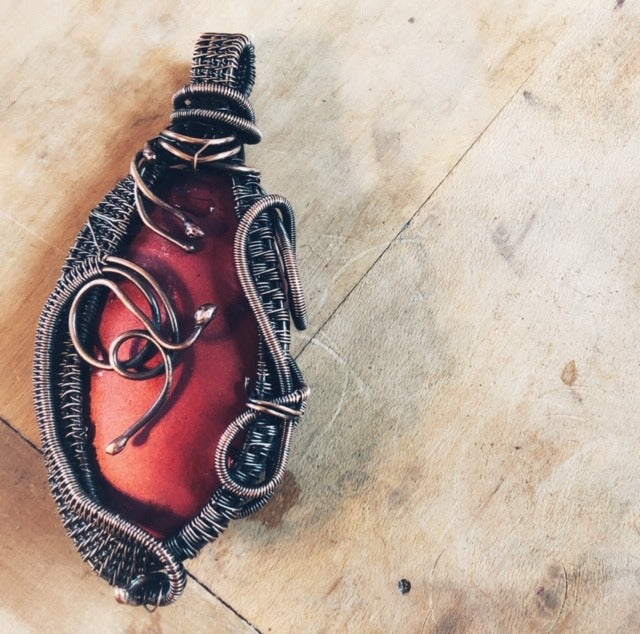 Copper wire and clay beads