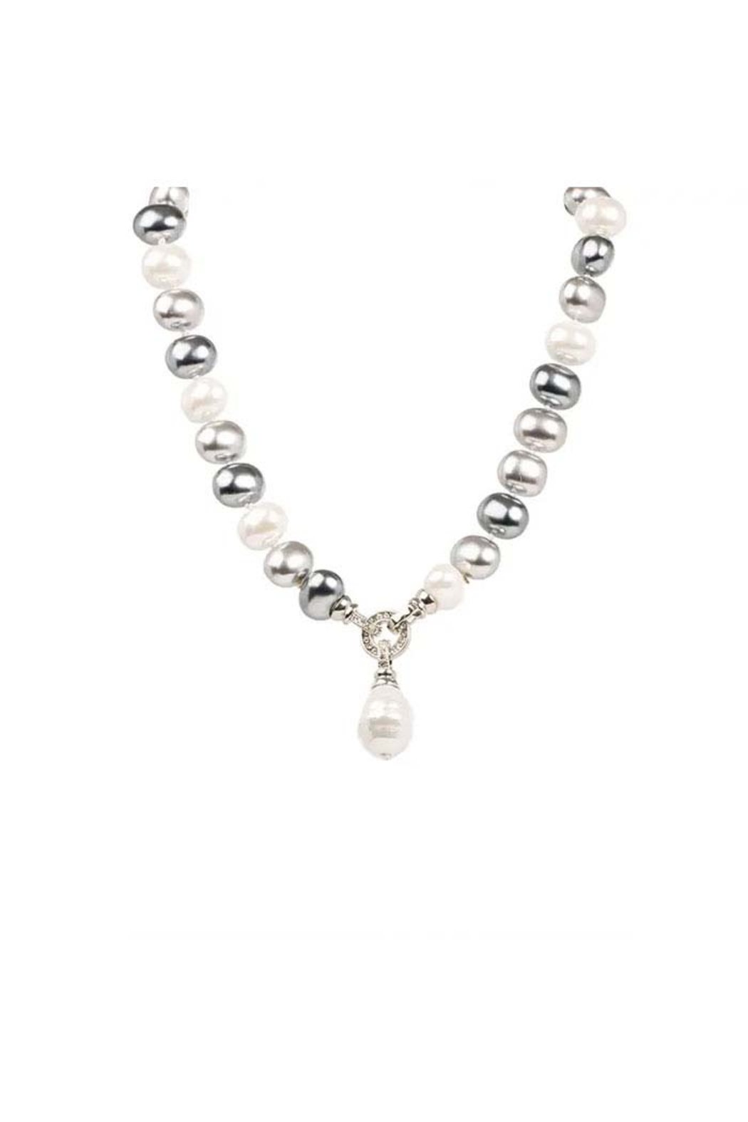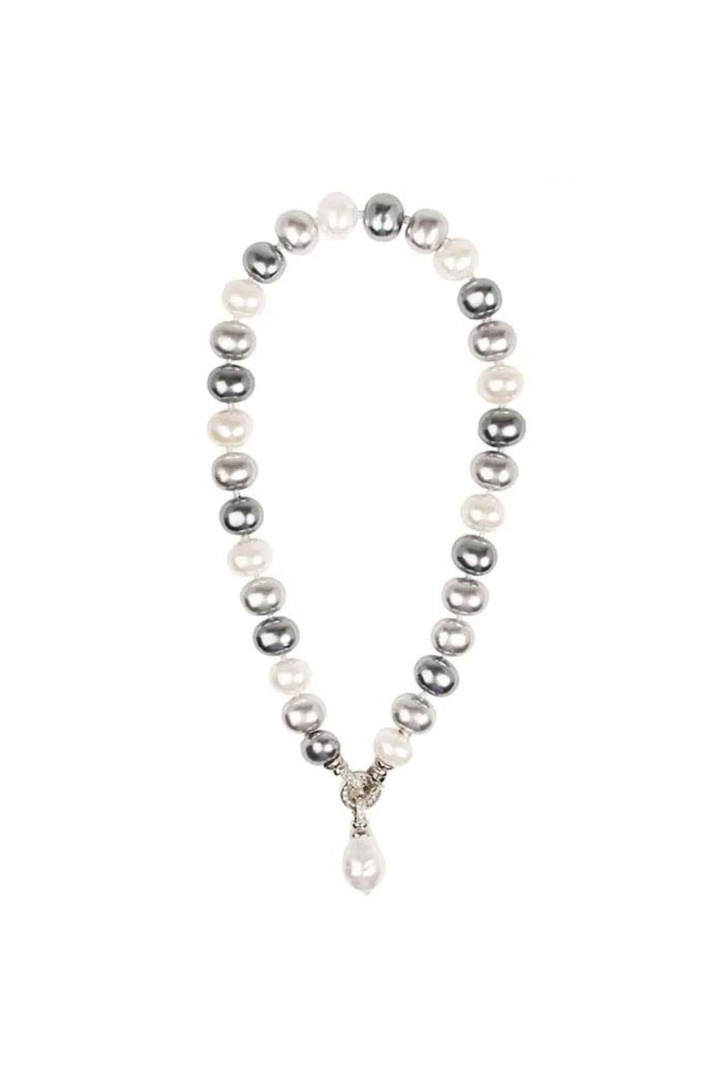 Neapolitan Glass Pearl Necklace. We've updated the classic pearl necklace by incorporating mixed tones and a chic pave clasp. Our Neapolitan Necklace is elegant and timeless, and perfect for any occasion. Wear it alone, or pair it with the Neapolitan Bracelet for a matching look. Materials: Glass Pearl, Rhodium Size: 17" x 0.5" Hinge Snap Closure