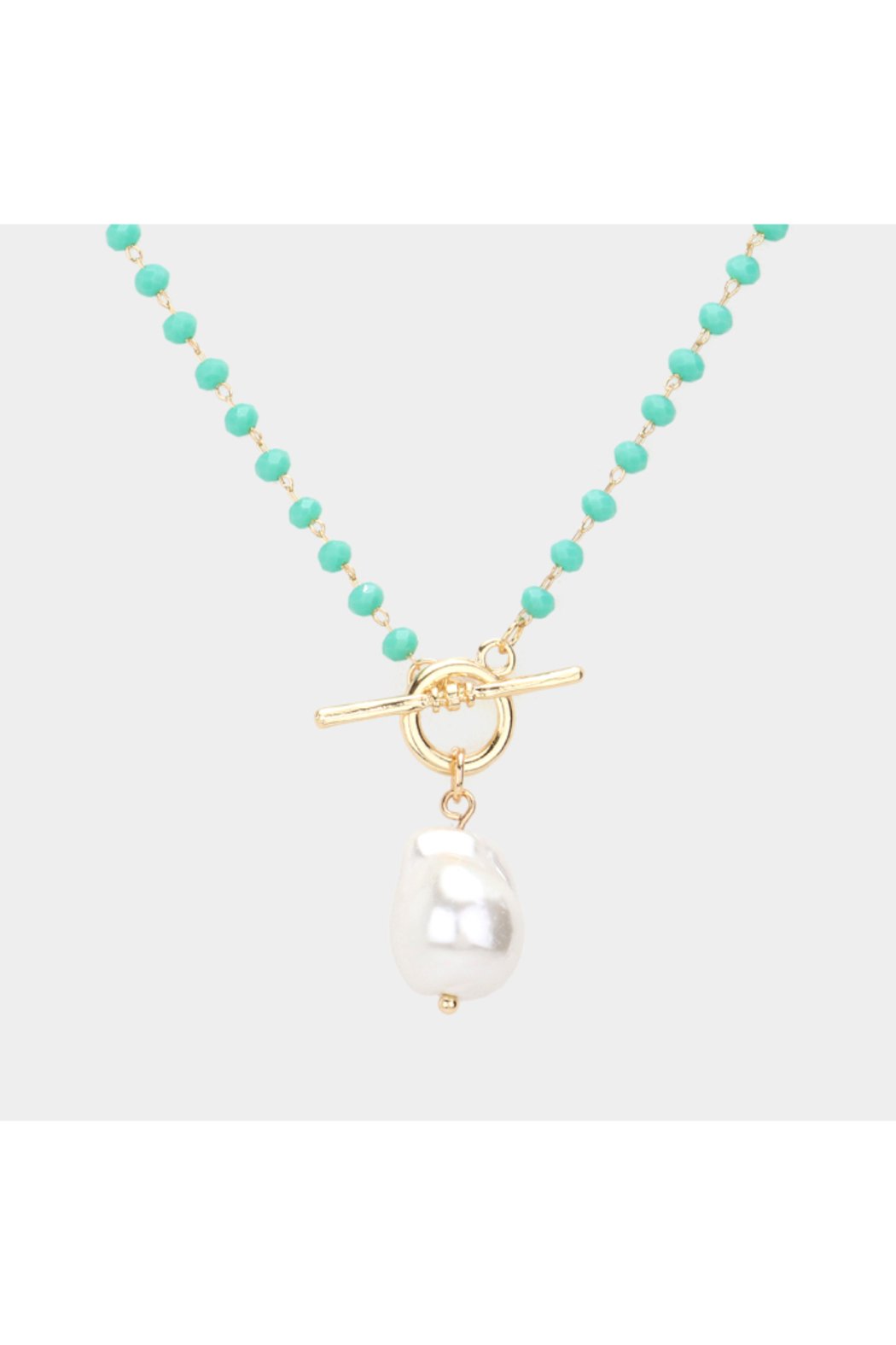 Beaded Toggle Pearl Necklace • Necklace Size : 18.5" L • Pendant Size : 0.6" X 1.3"