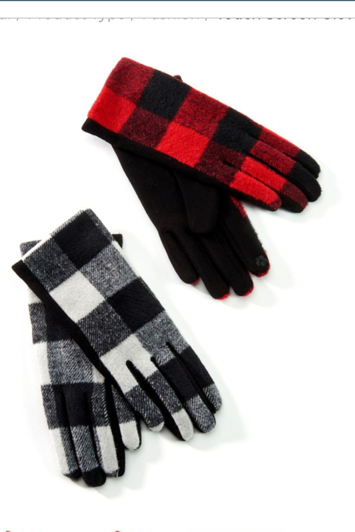 Opposites attract with these touch screen gloves designed with a large plaid pattern on the back and a solid black color on the front.