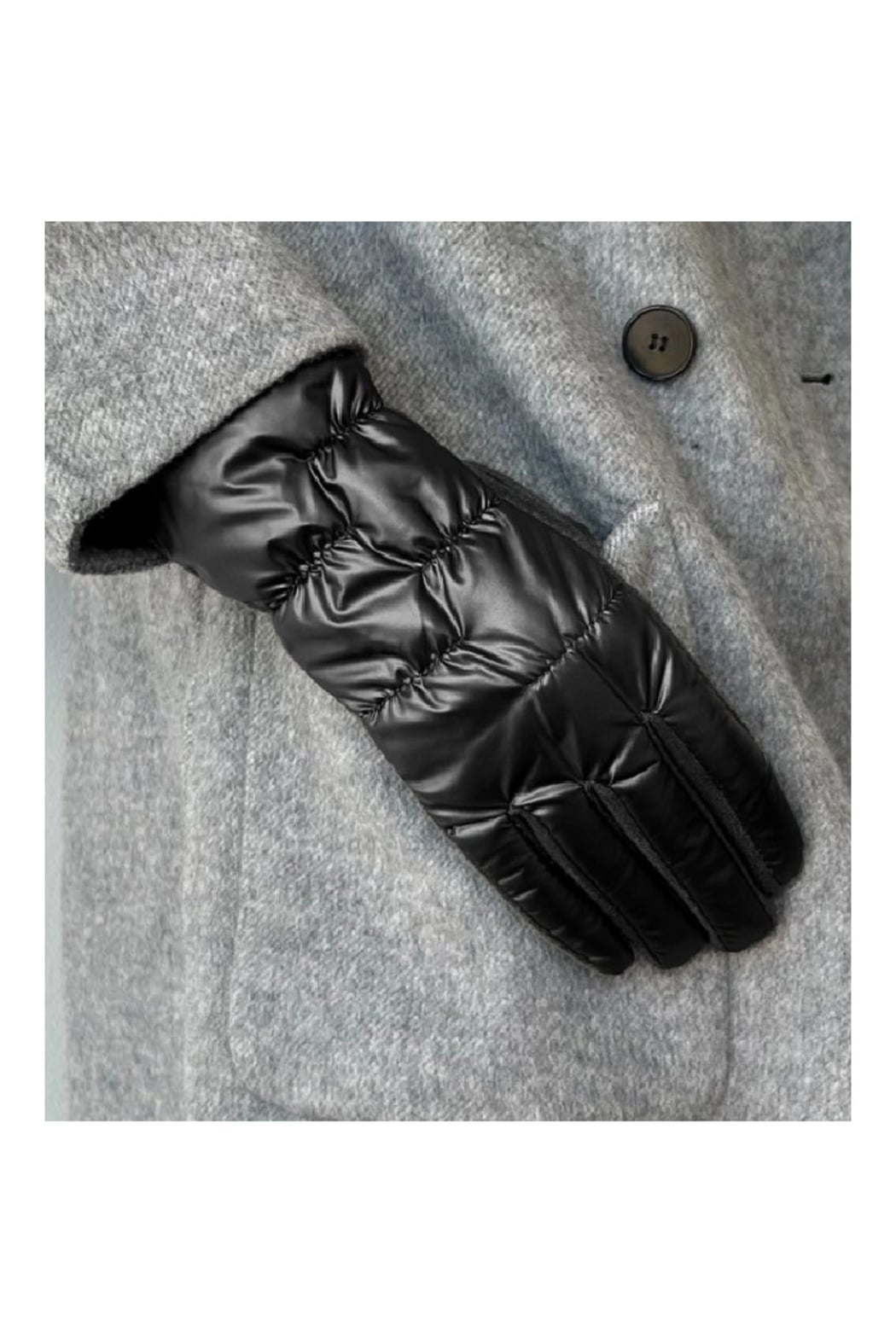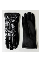Quilted puffer gloves engineered for smartphone use, combining a glossy insulated exterior with a soft fleece palm. The Puffer Texting Gloves offer lightweight warmth and touchscreen-sensitive fingertips for everyday cold-weather wear. These gloves are styled by La-a SOLE and pair practical insulation with a sleek, modern silhouette.