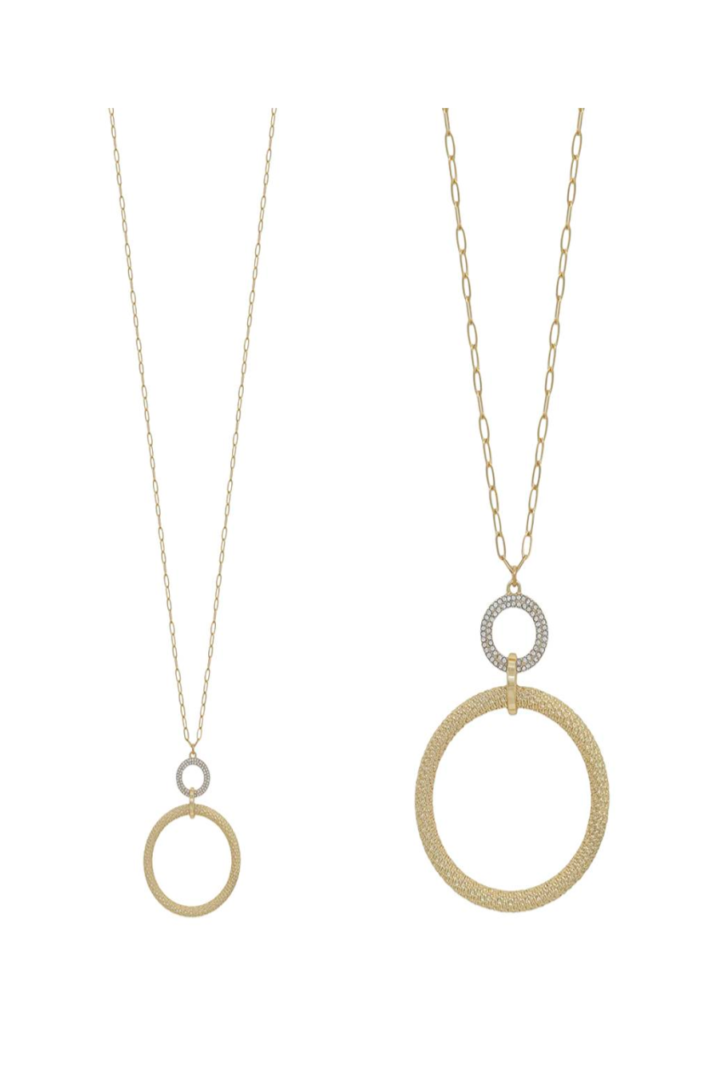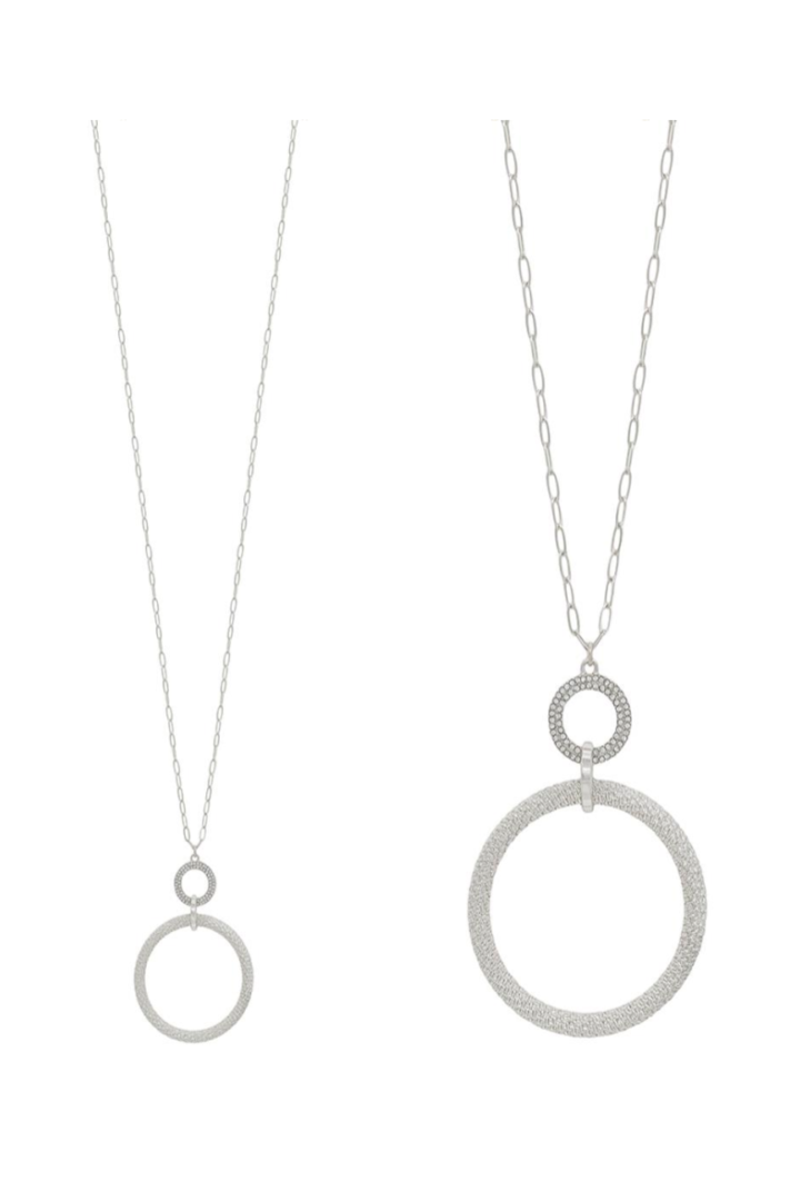 ROUND PAVE ACCENT BOLD RING PENDANT LONG NECKLACE