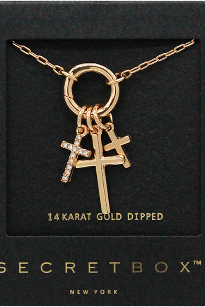SECRET BOX GOLD DIPPED CROSS CHARM NECKLACE