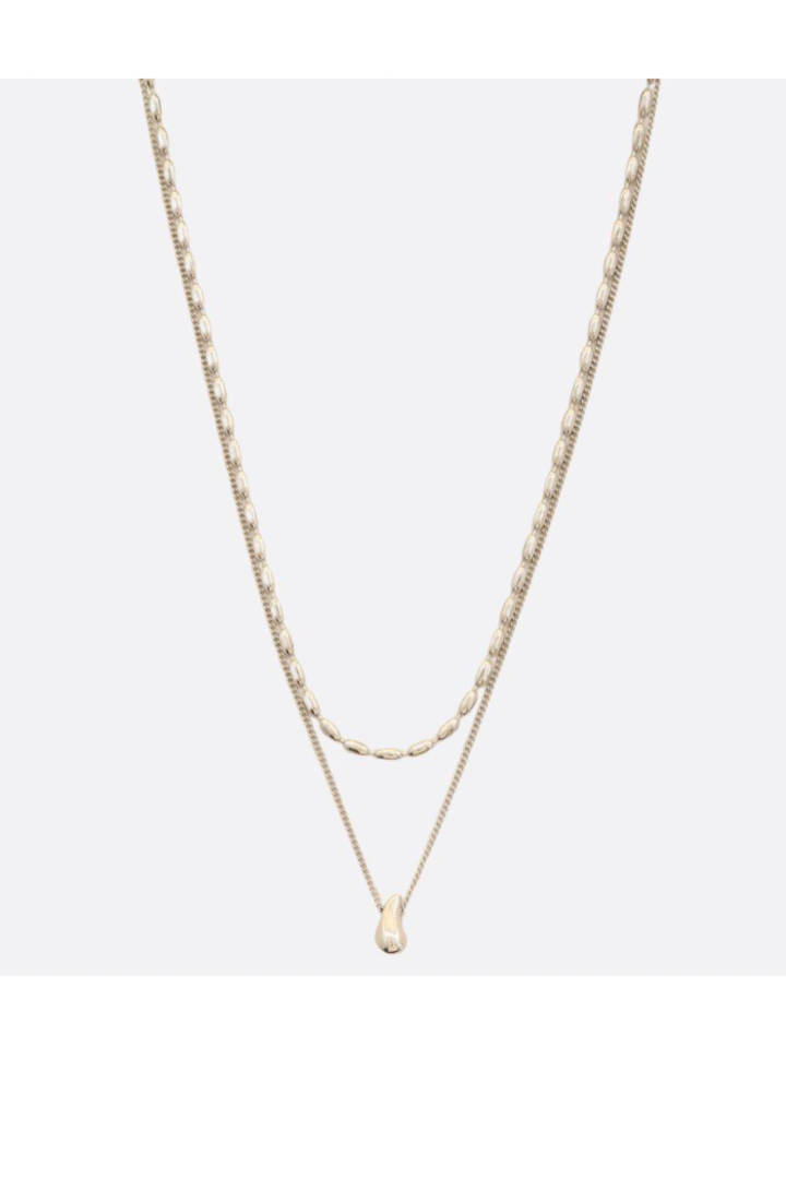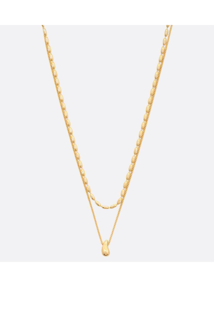 SODAJO TEARDROP OVAL BEAD LINK LAYERED GOLD DIPPED NECKLACE