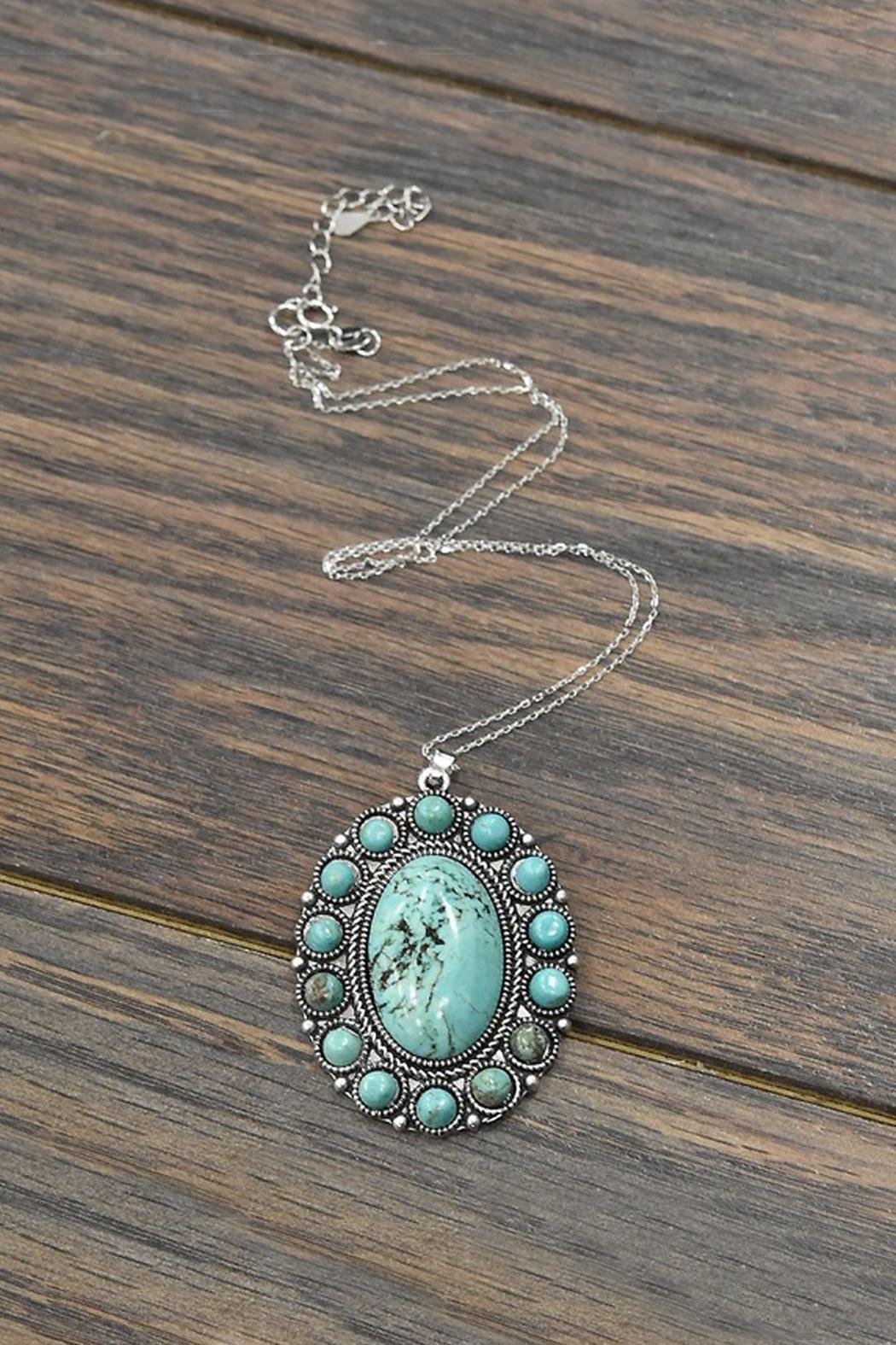 Sterling-Silver-Chain-Necklace With Natural-Turquoise-Pendant