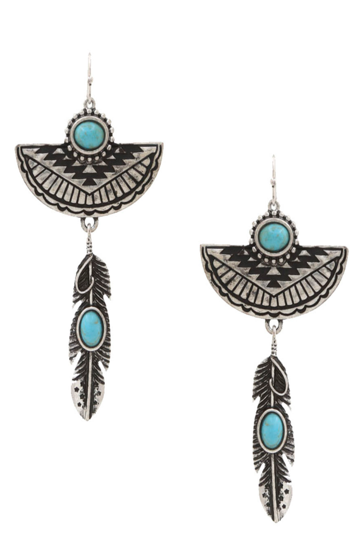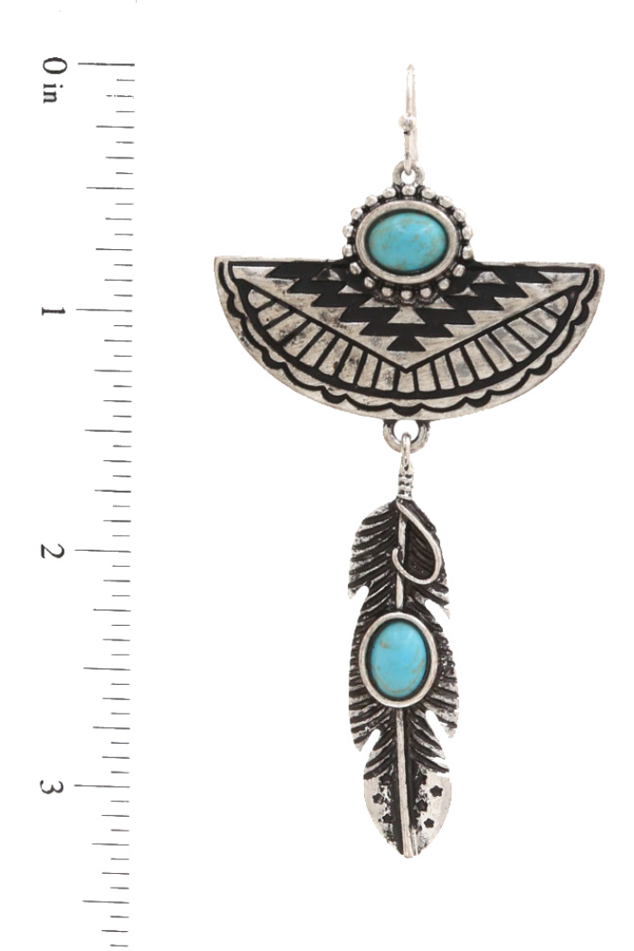 WESTERN HALF CIRCLE LEAF CHARM DANGLE EARRING