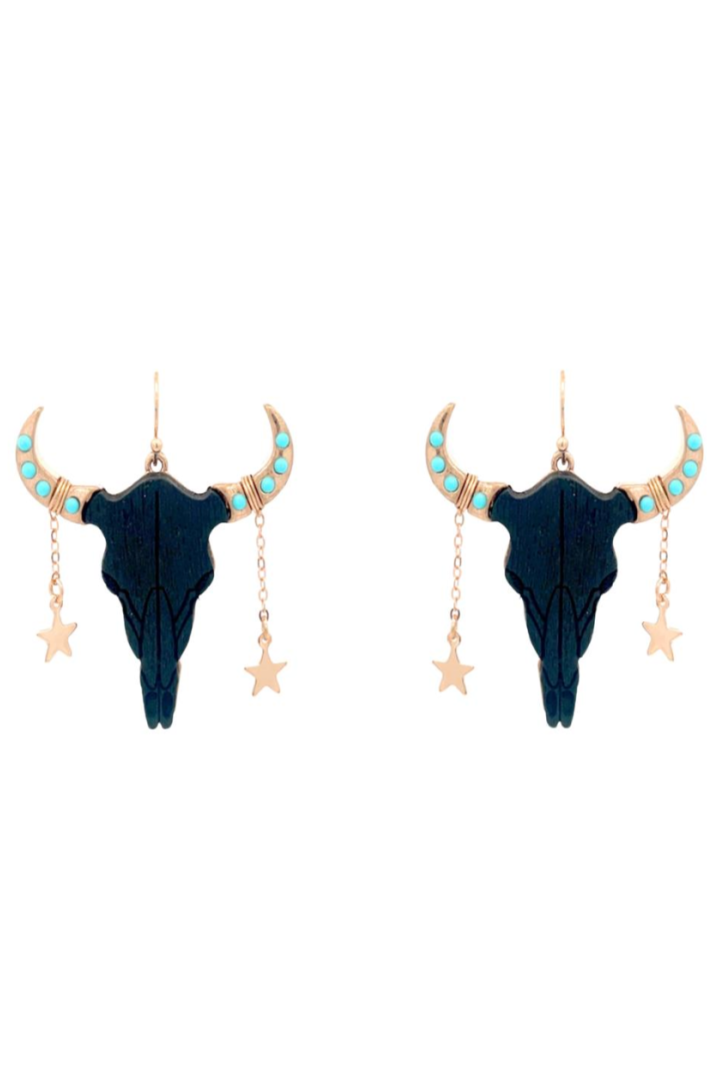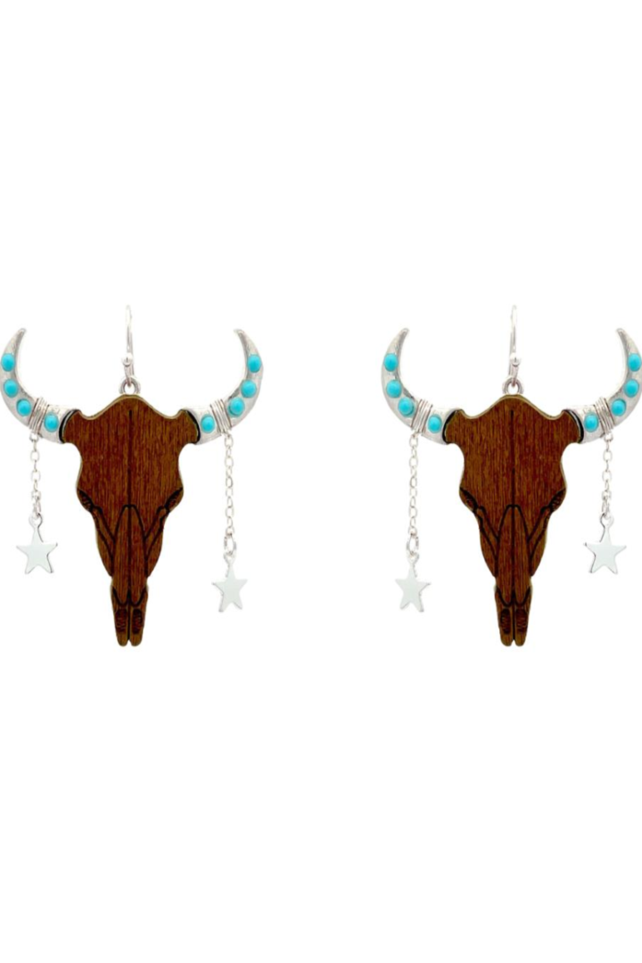 WESTERN STYLE CATTLE HEAD DANGLE EARRING