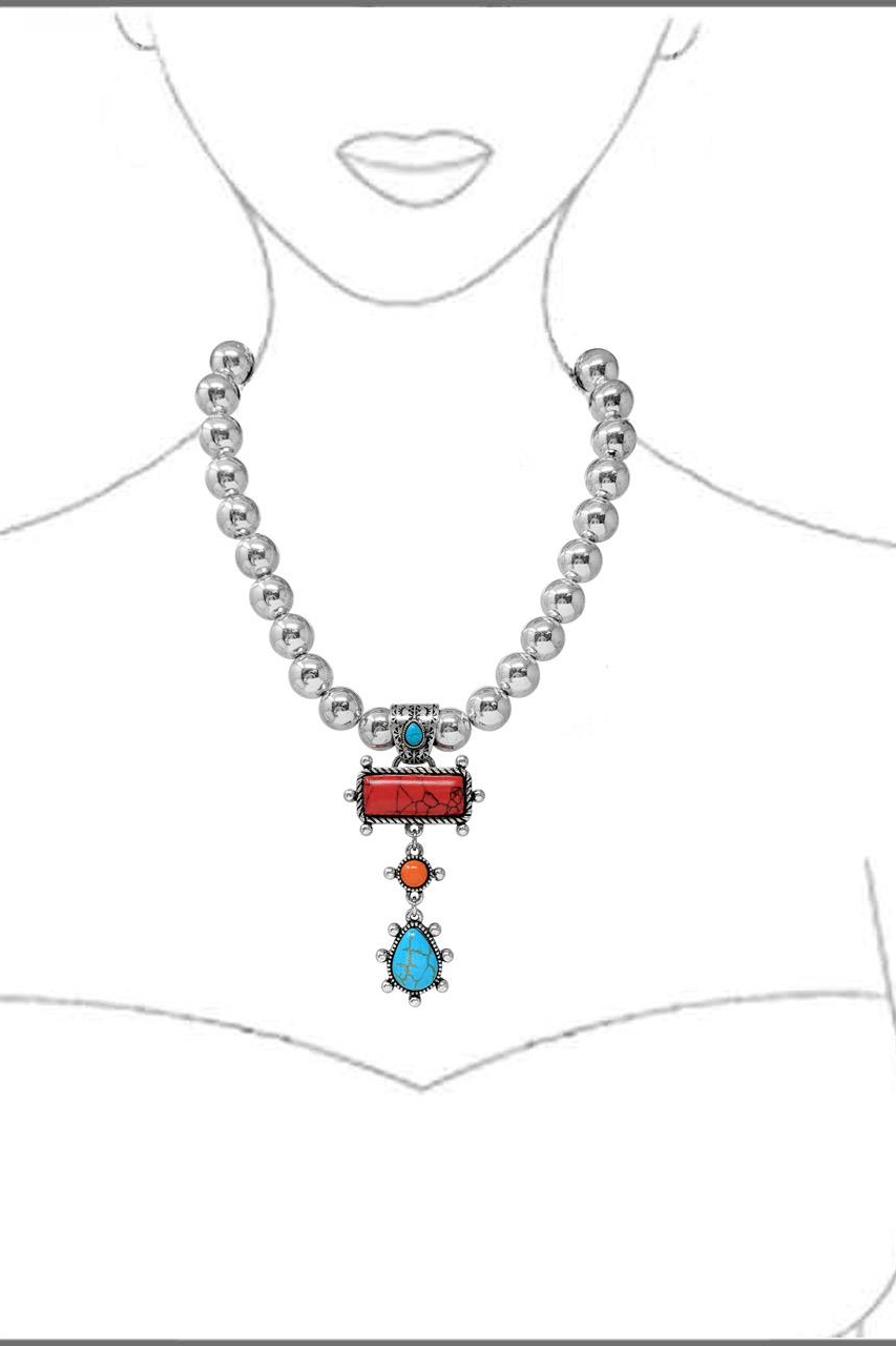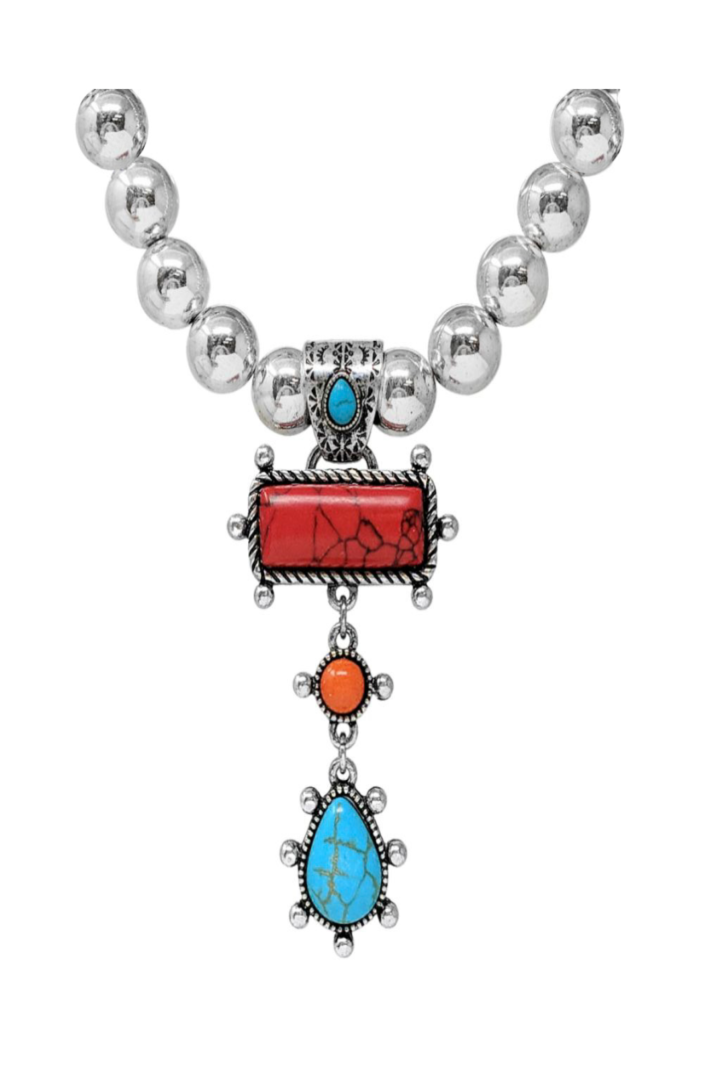 WESTERN STYLE TEARDROP MULTI STONE NECKLACE
