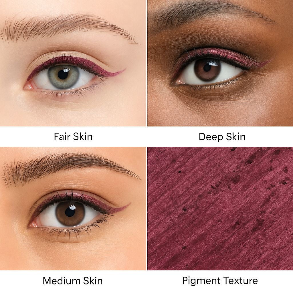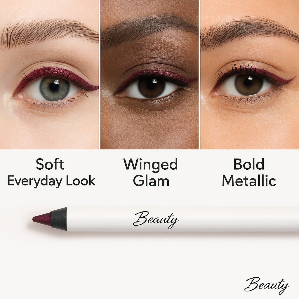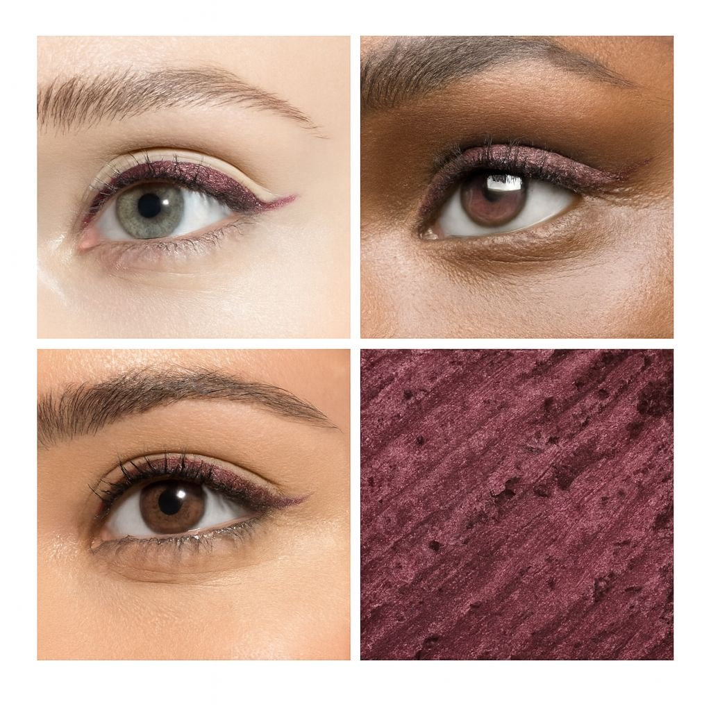 The When Pencil Met Gel All-Day Long Wear Eyeliner in Fig Shimmer delivers a rich dark-purple hue with a subtle metallic sheen that stays put from morning to night.