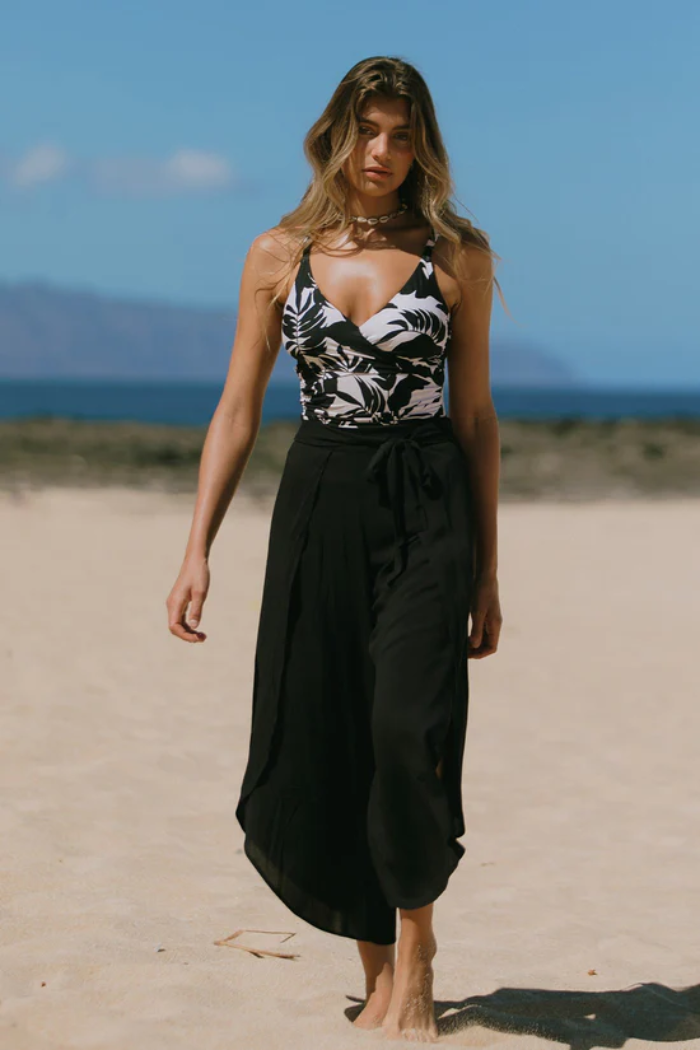 Enjoy the flowy feel of these pants, featuring wrap up detail at the leg and gracefully curved hem. The adjustable tied sash accents your waist, allowing you to customize the fit for a just-right feel.
