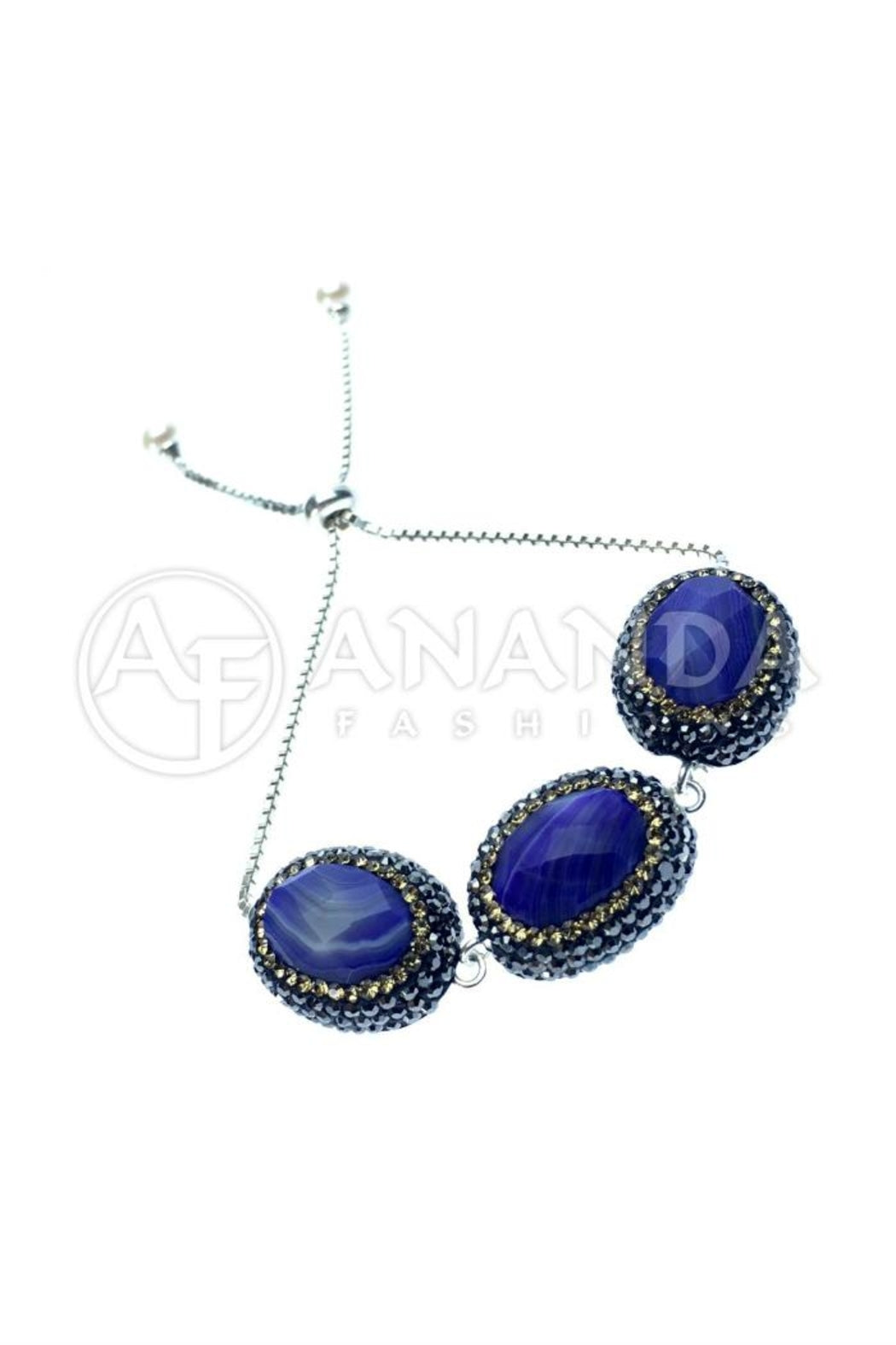 Handcrafted 925 Silver Adjustable Bracelet with Agate, Swarovski Crystals and a Rhodium Overlay. NOTE:This item is handcrafted and made to order and ships within 3 to 4 weeks. Not available for immediate delivery.