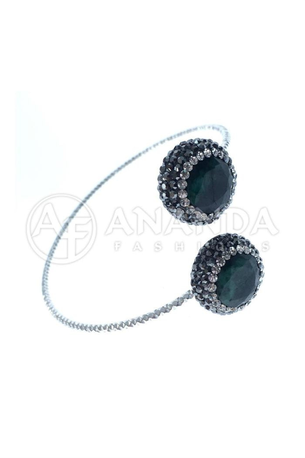 Handcrafted 925 Silver Bracelet with Emerald, Swarovski Crystals and a Rhodium Overlay. NOTE:This item is handcrafted and made to order and ships within 3 to 4 weeks. Not available for immediate delivery.