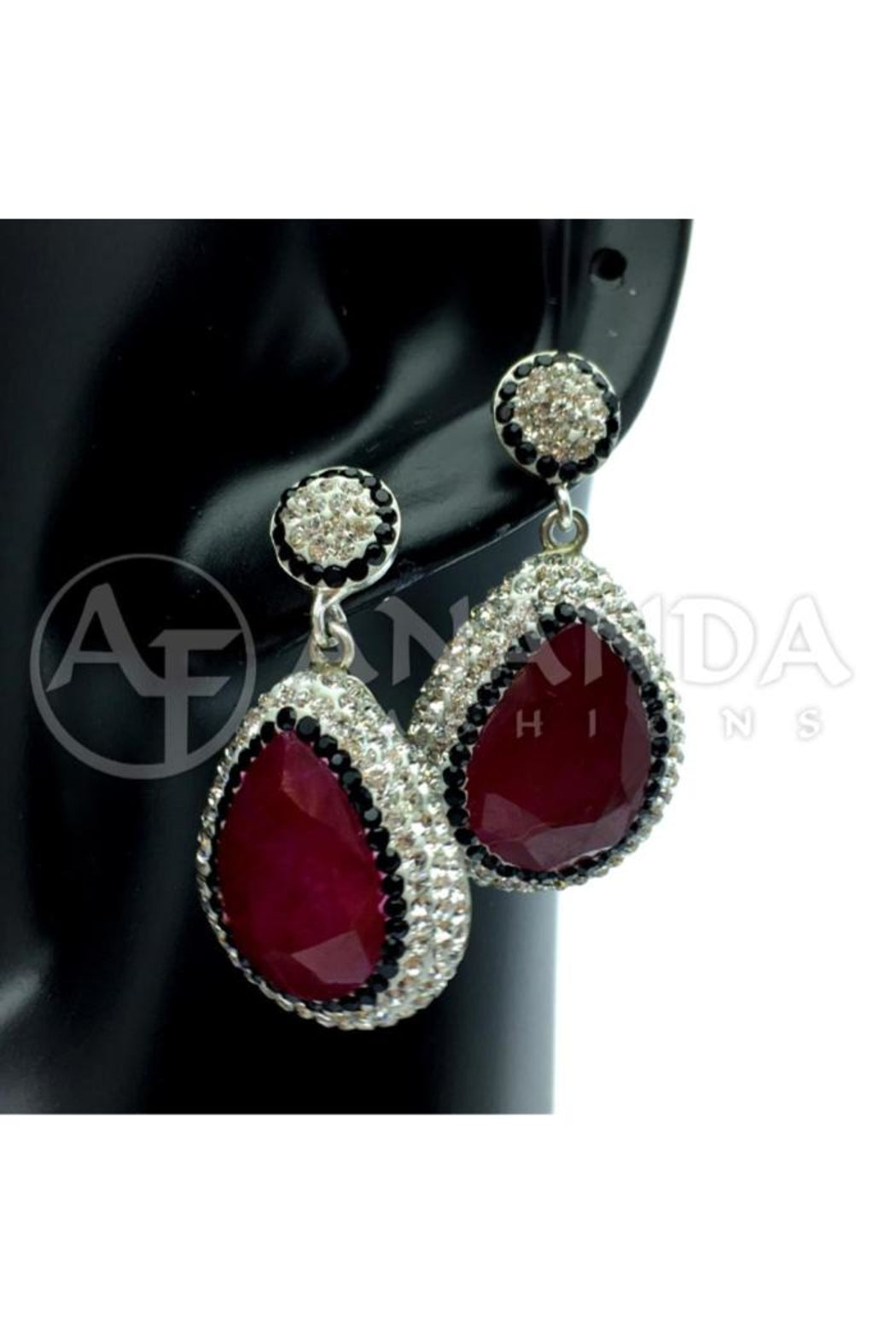 Handcrafted 925 Silver Single Drop Earrings with Cats Eye, Swarovski Crystals and a Rhodium Overlay.