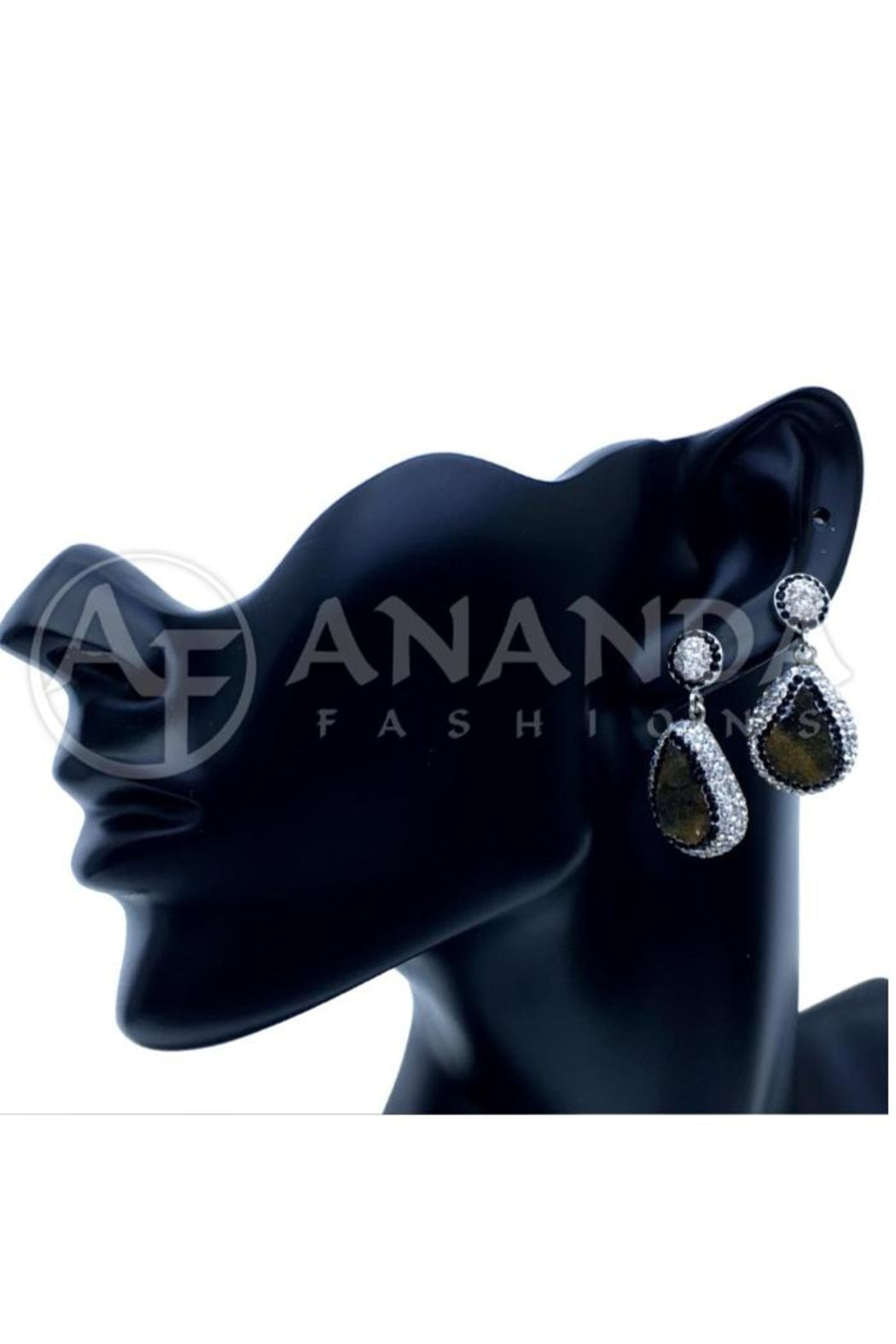 Handcrafted 925 Silver Single Drop Earrings with Aventurine, Swarovski Crystals and a Rhodium Overlay.