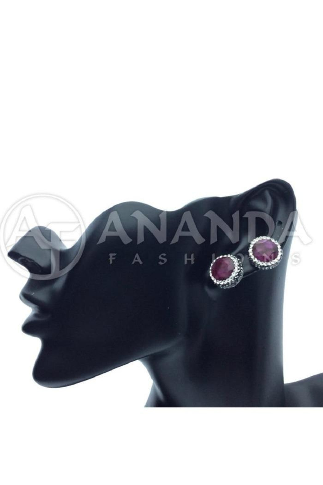 Handcrafted 925 Silver Stud Earrings with Jade Ruby, Hematite, Swarovski Crystals and a Rhodium Overlay.