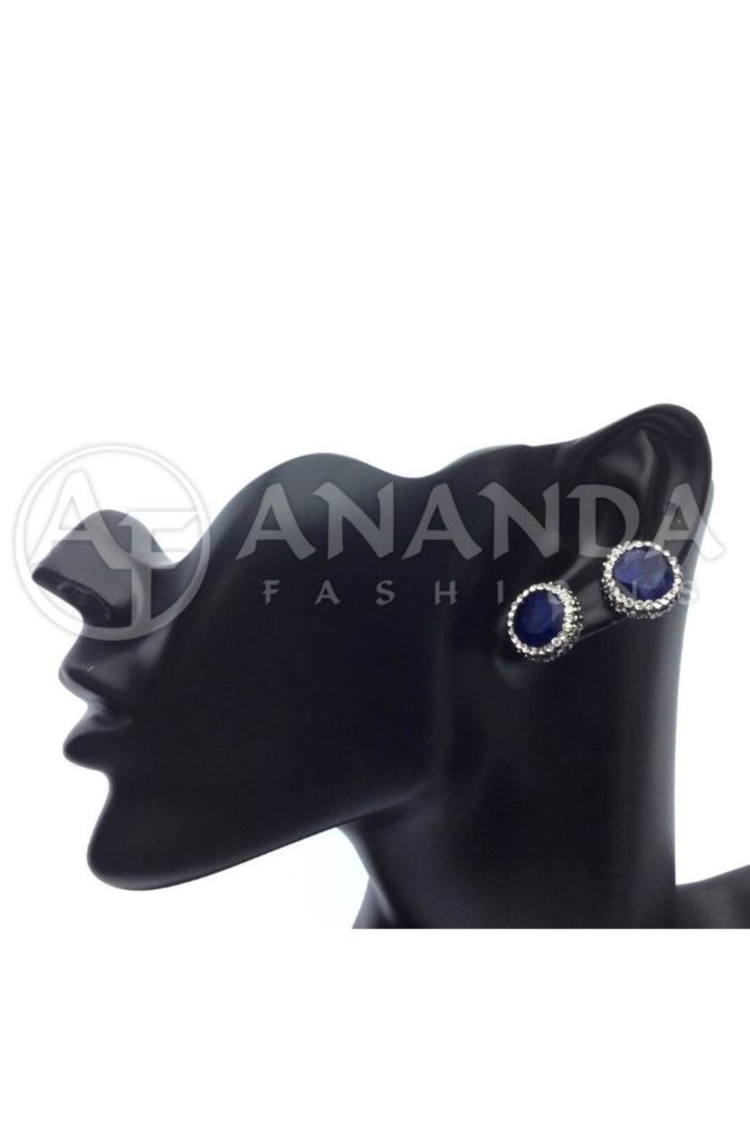 Handcrafted 925 Silver Stud Earrings with Jade Sapphire, Hematite, Swarovski Crystals and a Rhodium Overlay.