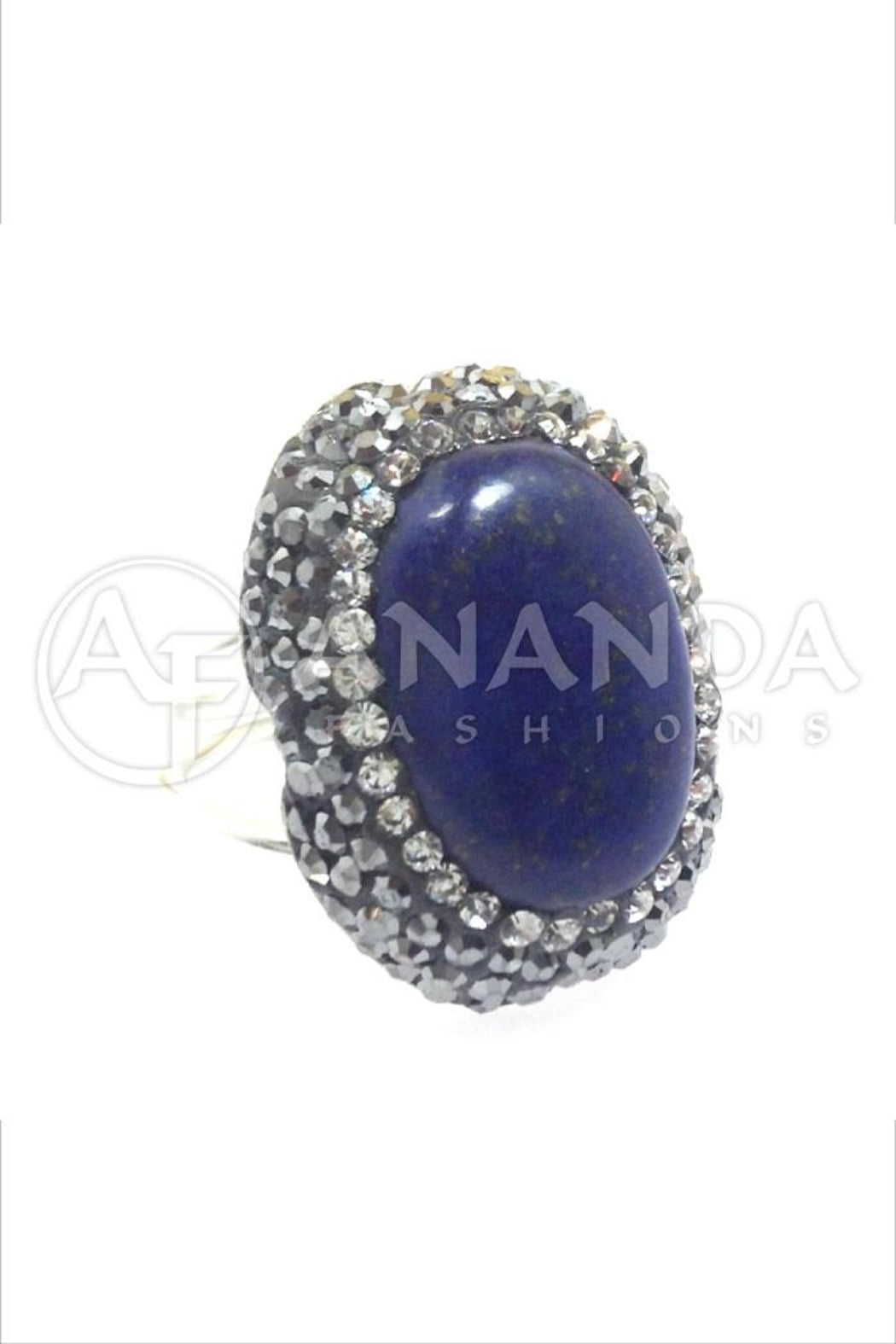 Handcrafted 925 Silver Ring with Lapis Lazuli, Hematite and Swarovski Crystals. Size adjustable. Rhodium overlay.