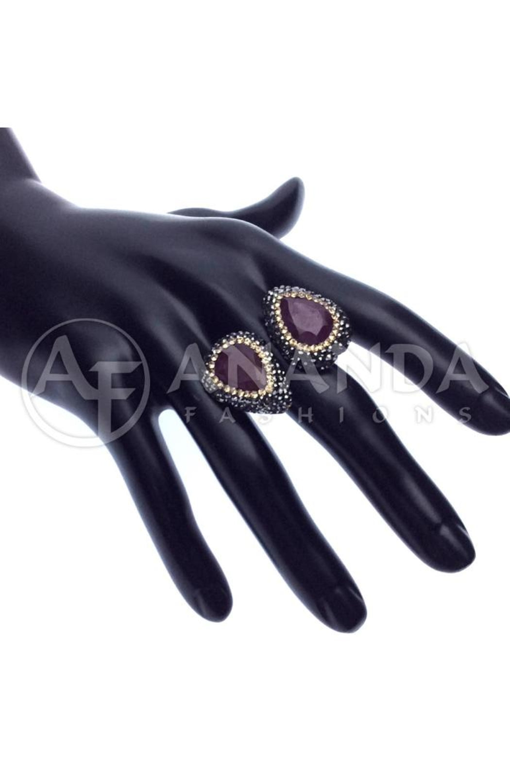 Handcrafted 925 Silver Ring with Ruby Gemstones, Hematite and Swarovski Crystals. Size adjustable. Rhodium overlay. NOTE:This item is handcrafted and made to order and ships within 3 to 4 weeks. Not available for immediate delivery.