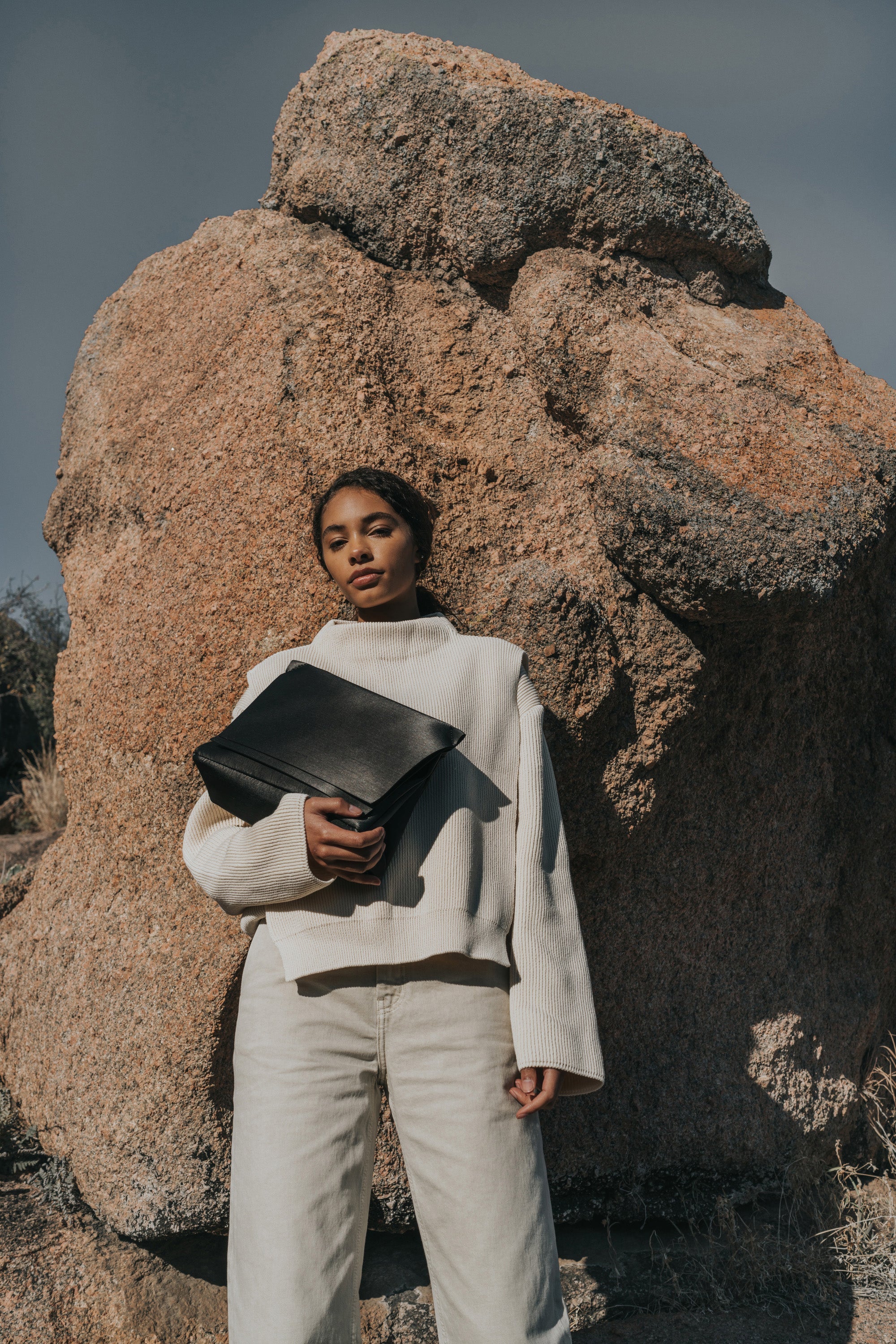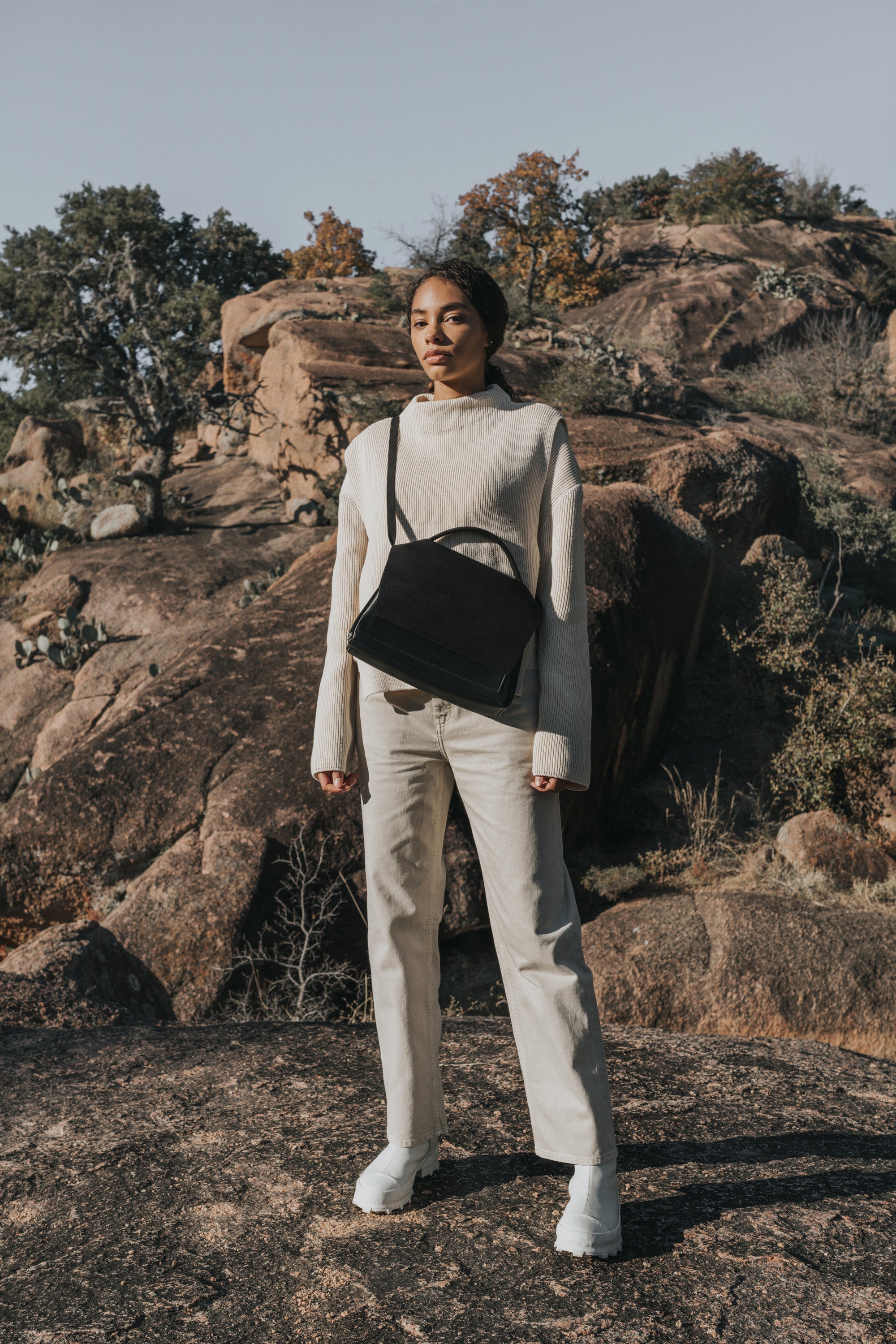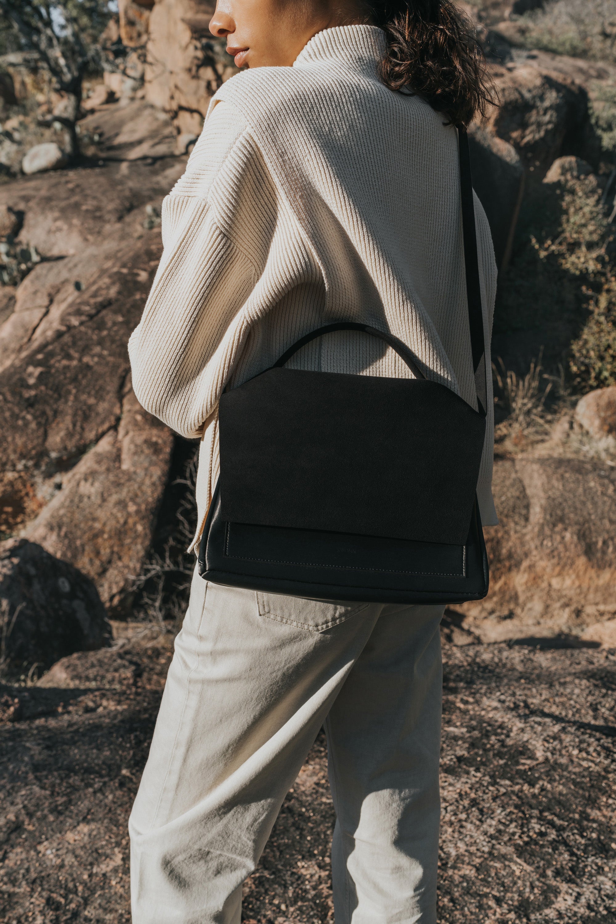 - Crossbody bag: Flip the top flap onto the side with the exterior pocket.
