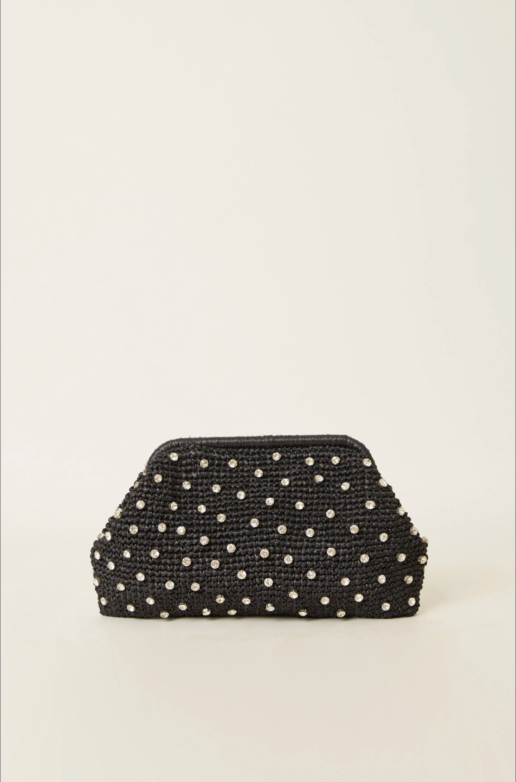 Elevate your style with our gorgeous straw clutch adorned with crystals—an elegant blend of beachy charm and sophisticated flair. This versatile accessory, crafted from natural woven raffia straw, features a sleek silhouette embellished with crystal accents, making it perfect for both sandy shores and stylish evenings out. Compact yet roomy enough for your essentials, this clutch is your ultimate go-to for any sunny getaway or chic occasion.