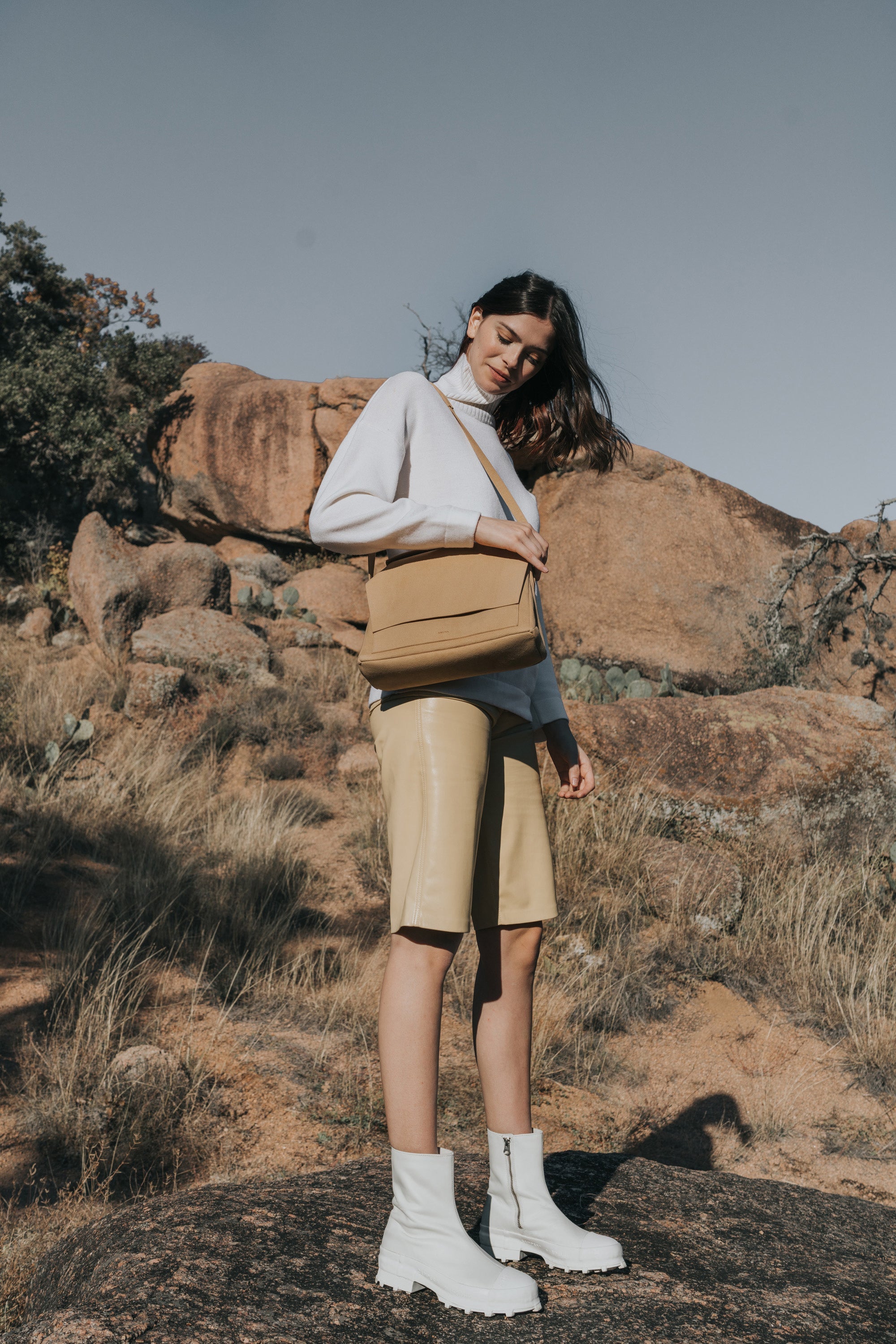 - Short handle bag: From the Crossbody bag, pull the strap handle inside the top opening. Continue pulling the strap until it is the same length as the original crossbody strap. This creates the shoulder bag silhouette.